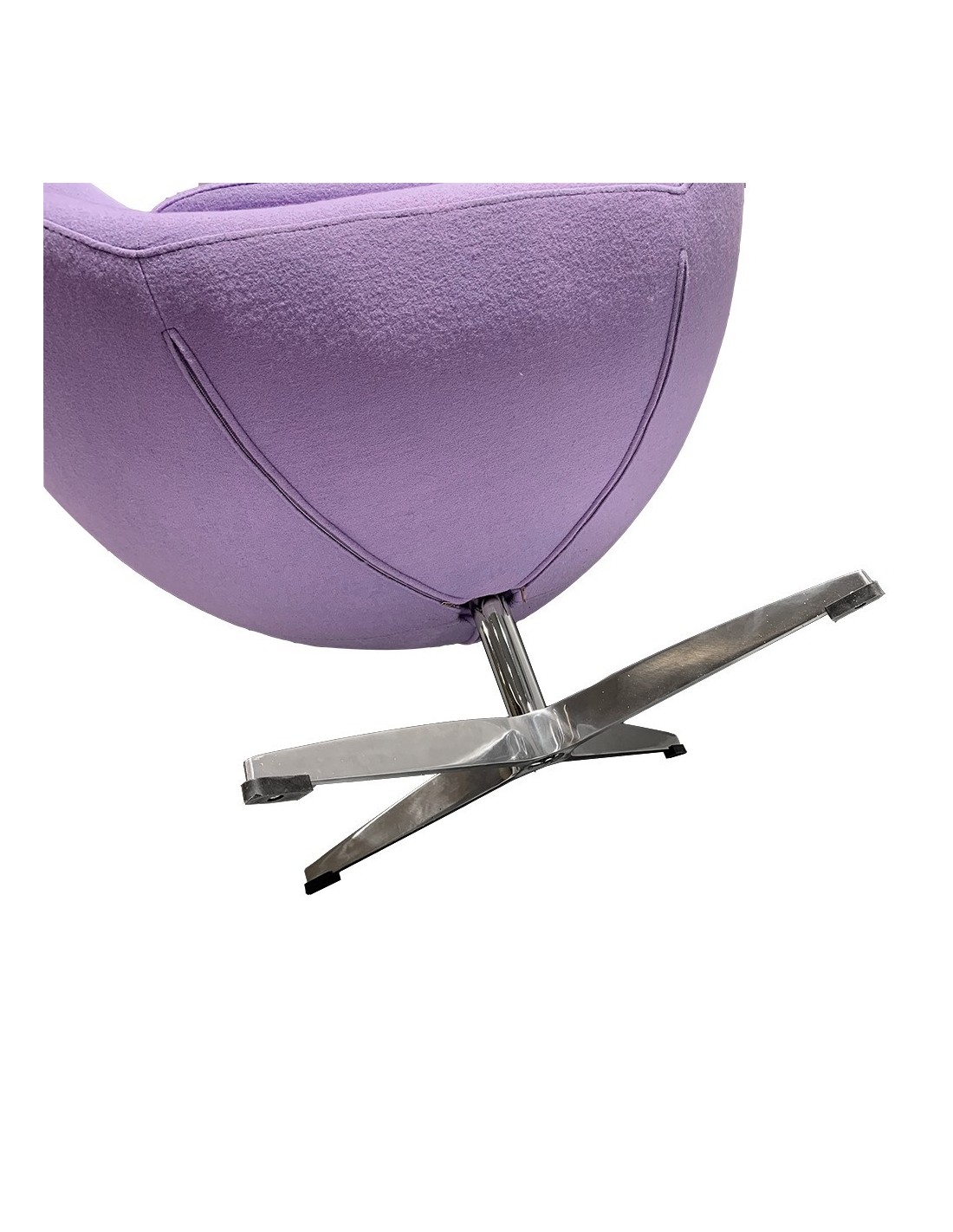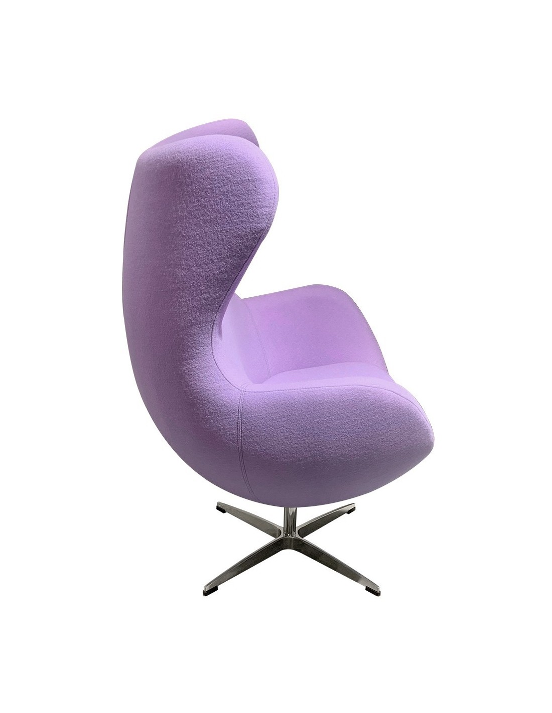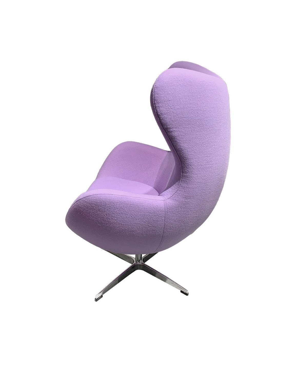 Sillón de diseño, giratorio, base y columna cromada, tapizado en tejido cachemira lila. Otros colores disponibles.