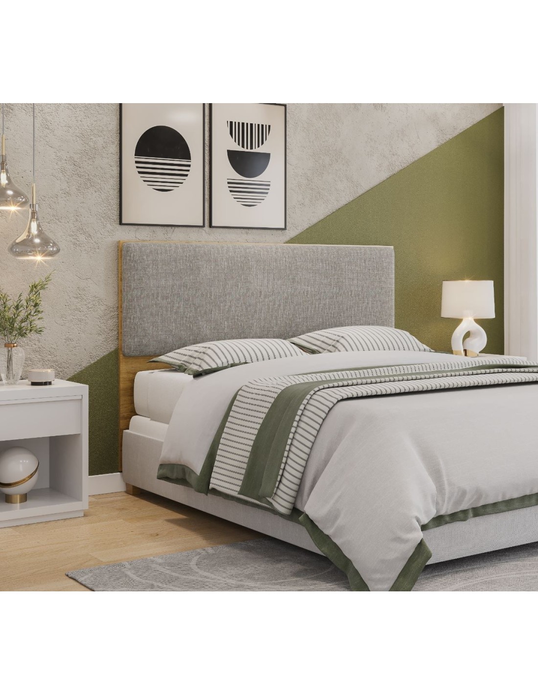 Cabecero de diseño, MDP blanco, tapizado en tejido velvet rosa. Otros acabados disponibles.