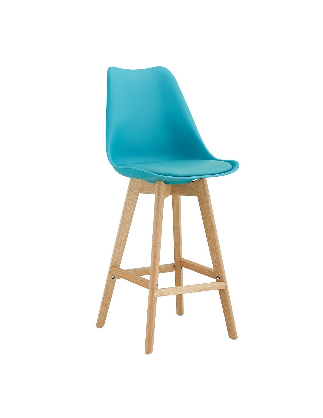 Taburete TORRE (SU), madera, turquesa, cojín turquesa