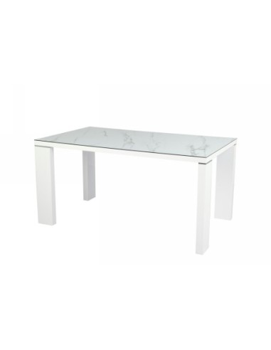 Mesa de comedor, armazón y tapa lacado en blanco, cristal templado con acabado cerámico.