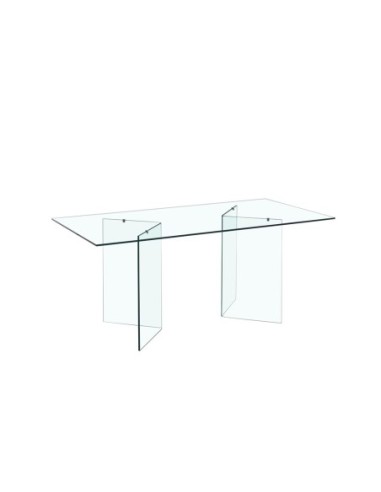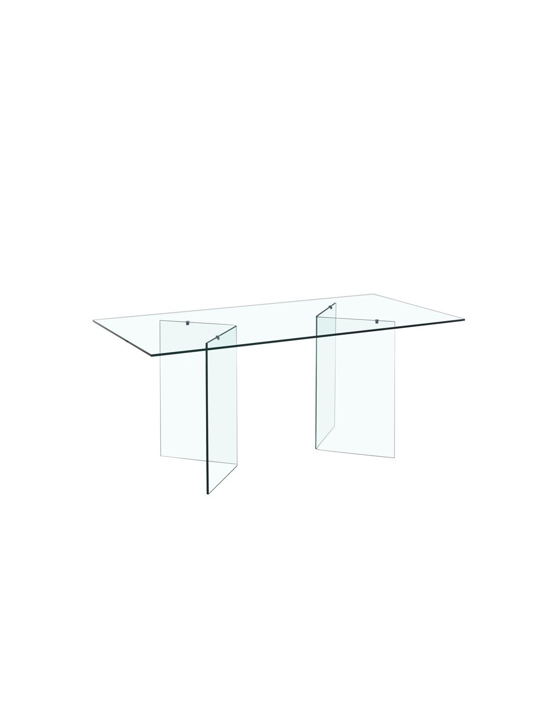 Mesa de diseño, extensible, armazón metálico con acabado imitación madera, tapa de DM lacado alto brillo y cristal con acabado blanco. Ampliación de DM bilaminado