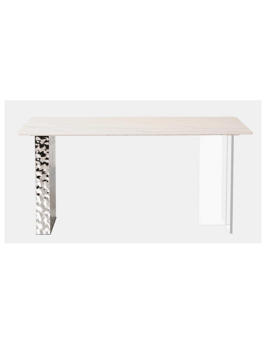 Mesa de diseño ovalada, base de fibra de vidrio, tapa de mármol marquina negro de 160x90 cms.