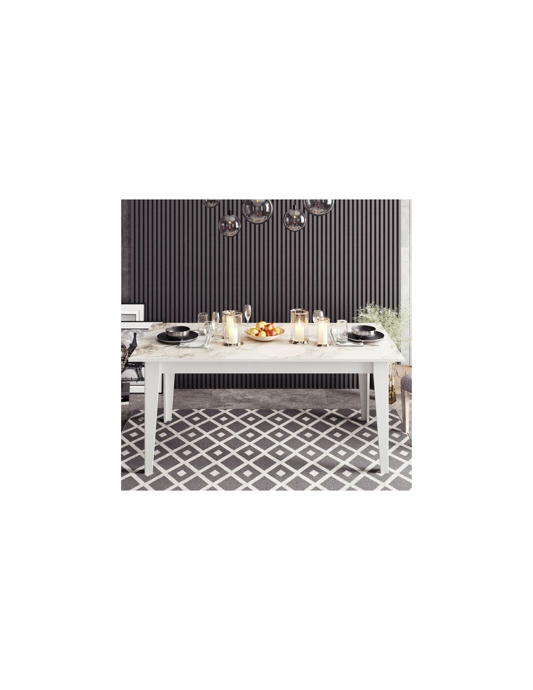 Mesa de comedor SIENA, biIaminado mármol blanco, 180 x 90 cms.