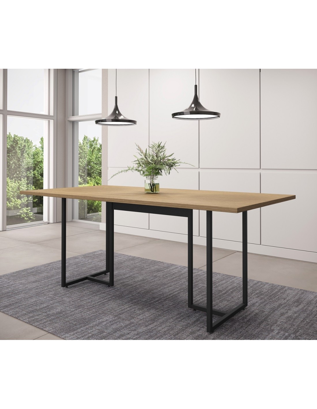Mesa PRIME 25, metal negro, tapa MDP color avellana, 180 x 90 cms