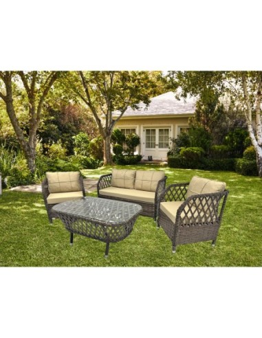 -Set de 2 sillones, sofá de 2 plazas y mesa baja, para hostelería y jardín