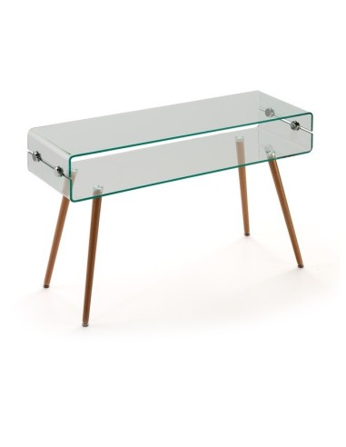 Consola de diseño, dos cajones, cristal templado, 10 mm. de espesor.