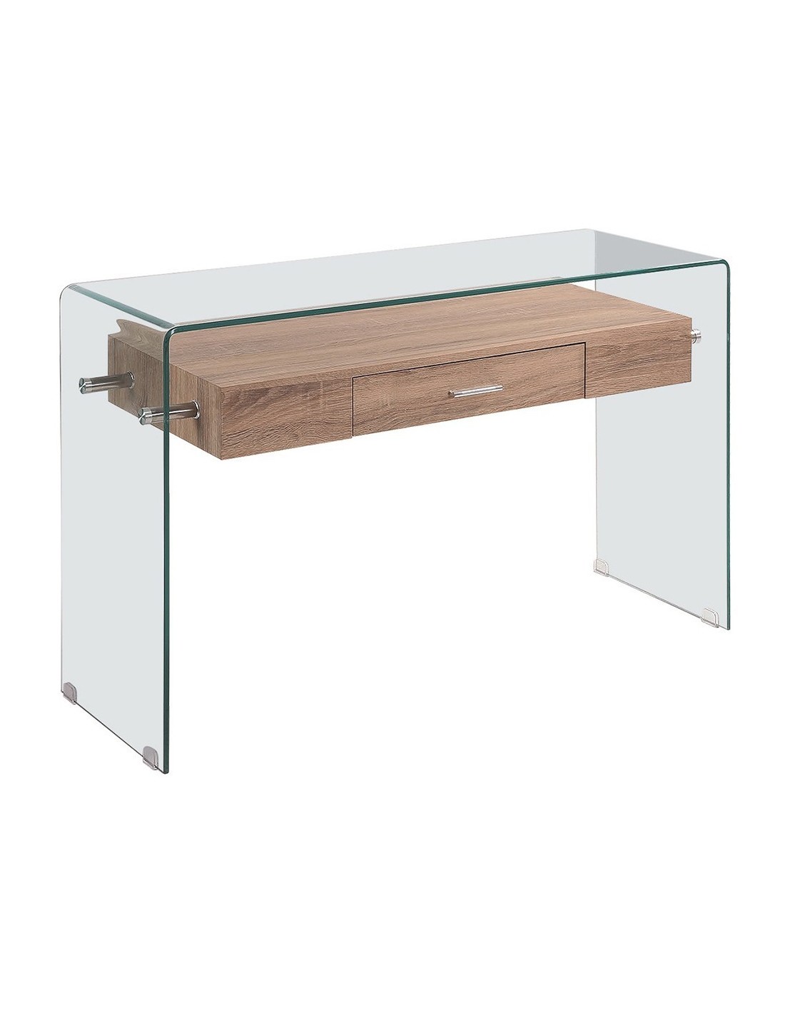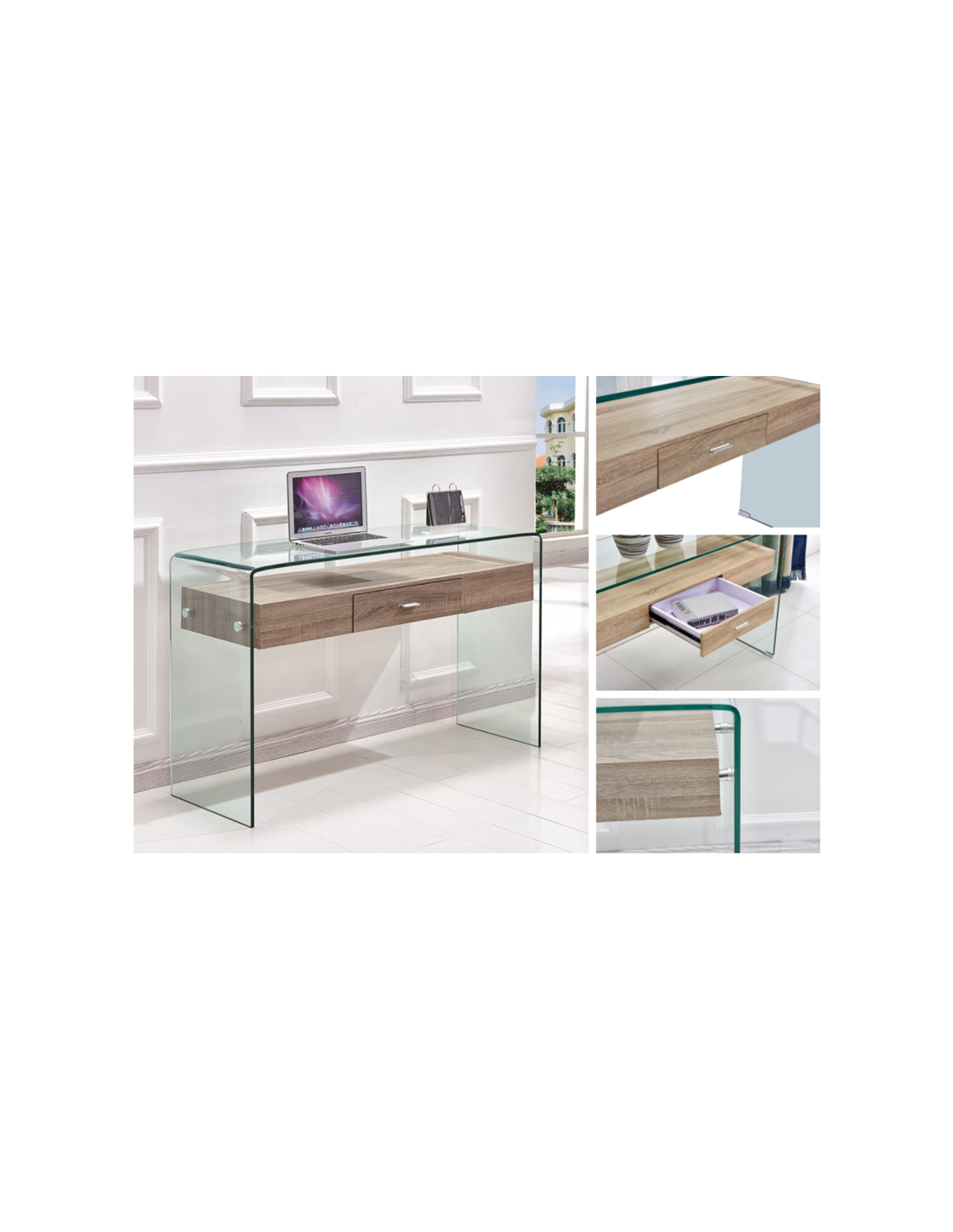 Consola de diseño, estante de MDF con cajón, cristal curvado, 12 mm. de espesor.