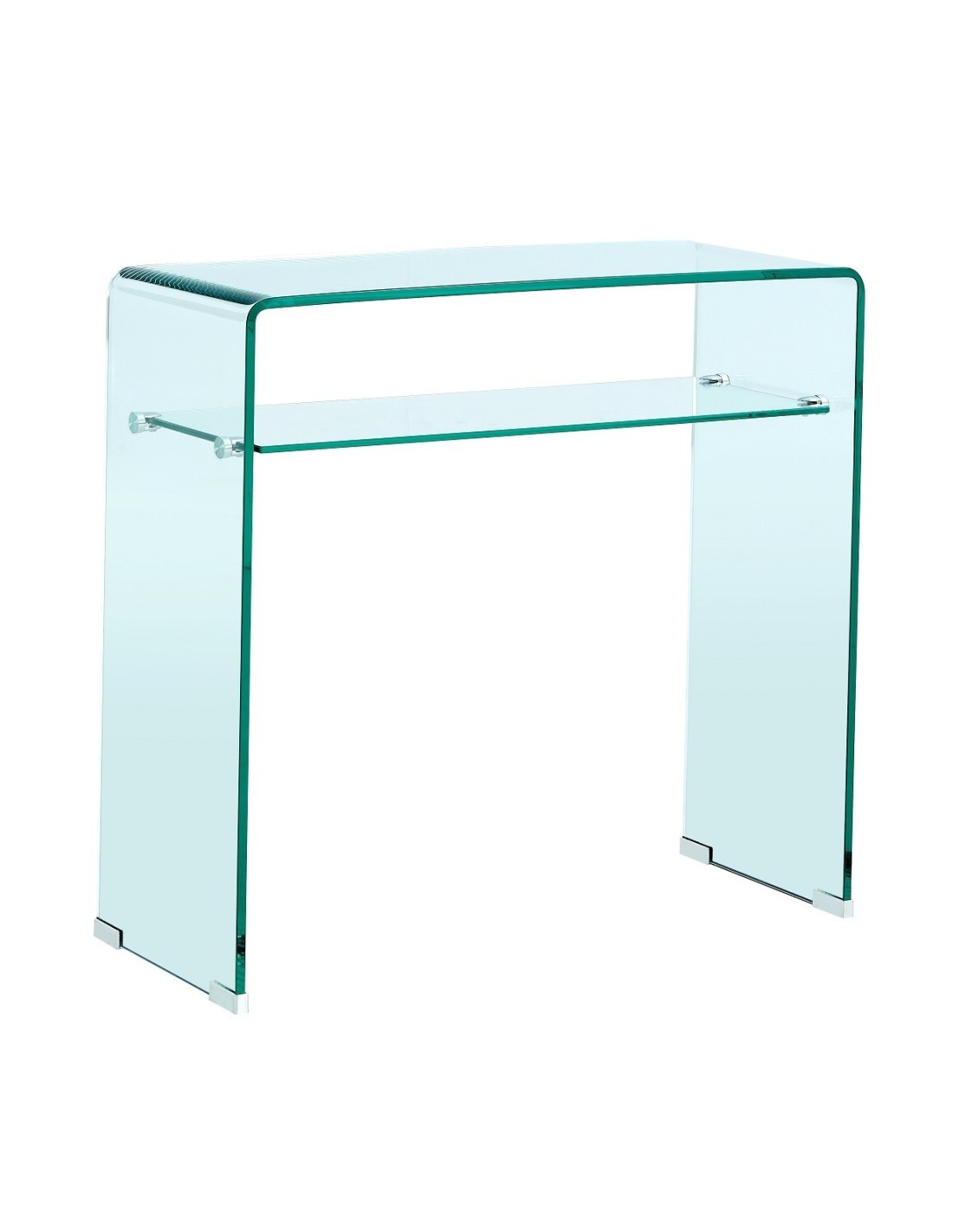 Consola de diseño, estante de MDF con cajón, cristal curvado, 12 mm. de espesor.