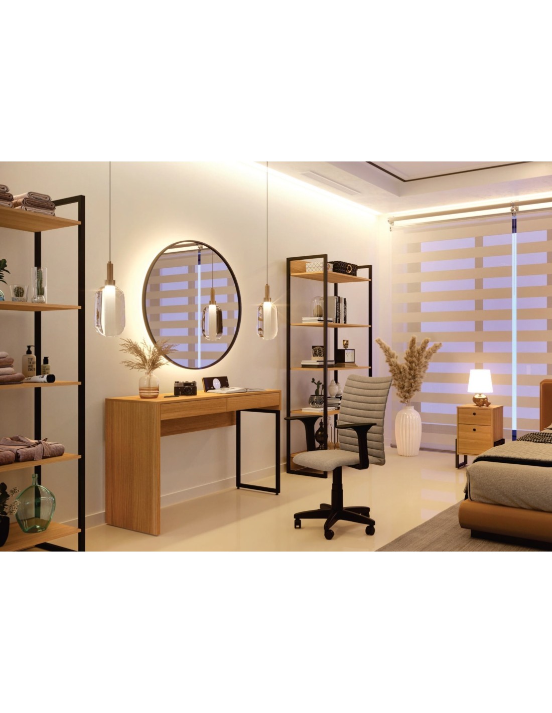 Mesa de diseño, multiusos, estructura de acero inoxidable, parte superior con tapa de cristal. Altura regulable de 56 a 91 cms.