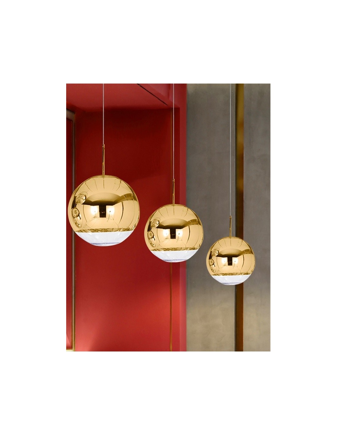 Lámpara de colgar, diseño, cristal acabado dorado, 25 cms de diámetro. Otros colores disponibles.