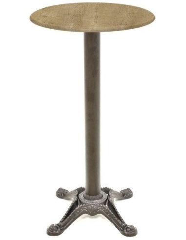 Mesa alta de diseño, multiusos, base de hierro en acabado negro, tapa de 60 cms de diámetro.