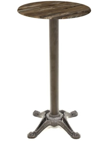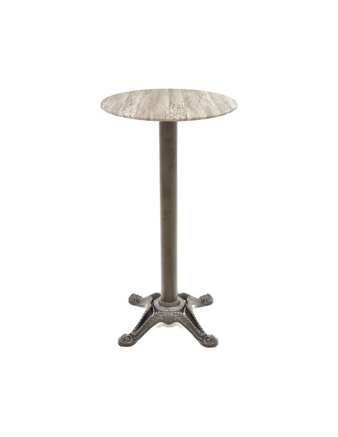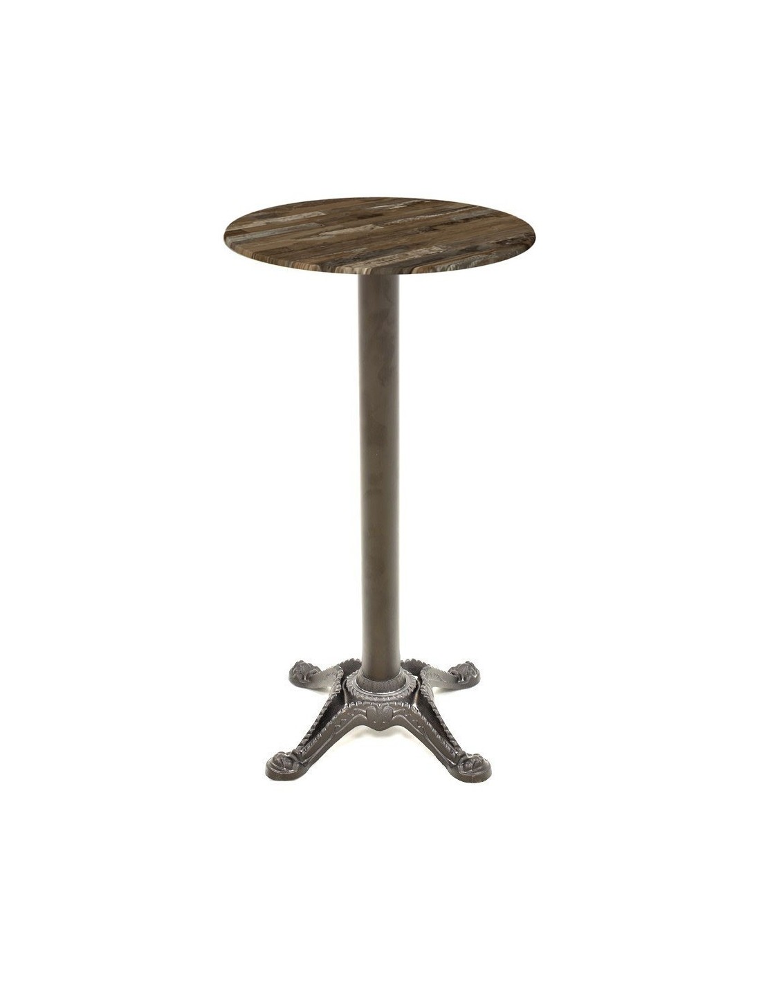Mesa alta de diseño, multiusos, base de hierro en acabado negro, tapa de 70 cms de diámetro.