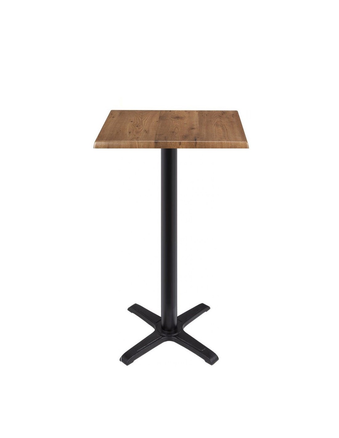 Mesa alta de diseño, multiusos, base de hierro acabado negro, tapa de 70 x 70 cms.