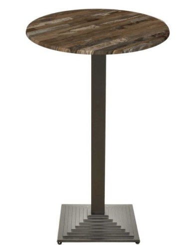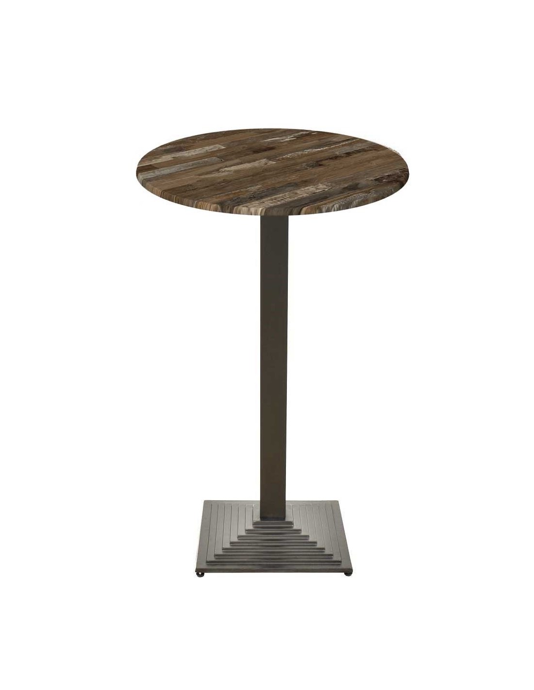 Mesa de diseño, alta, multiusos, base de hierro en acabado negro, tapa de 60 cms de diámetro.