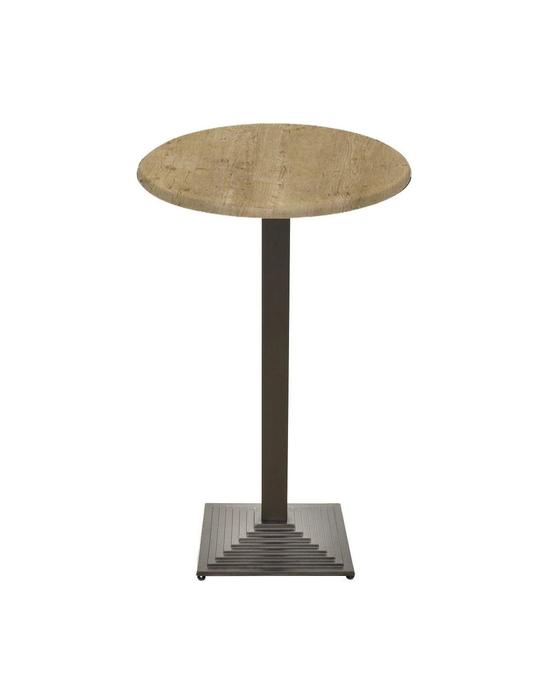 Mesa de diseño, alta, multiusos, base de hierro en acabado negro, tapa de 70 cms de diámetro.