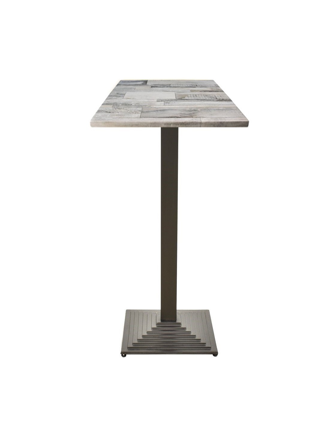 Mesa de diseño, alta, multiusos, base de hierro en acabado negro, tapa de 60 x 60 cms.