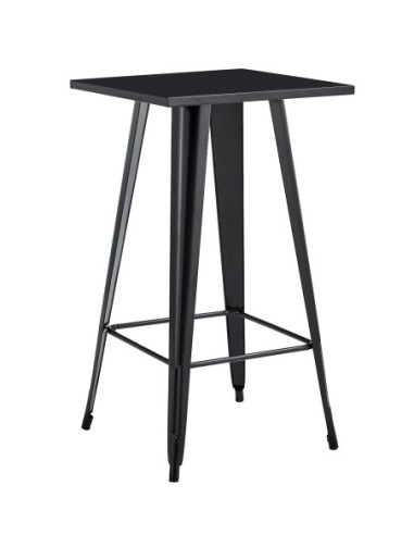 Mesa alta de diseño, estructura y tapa de acero, pintada en negro. Uso en interiores o exteriores
