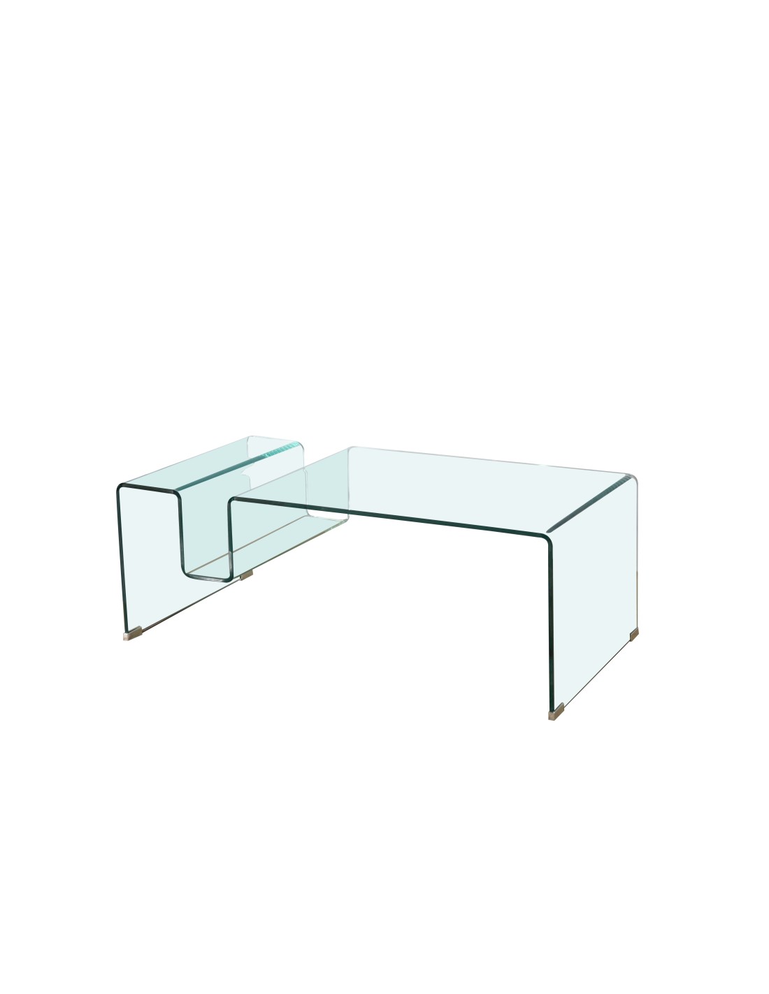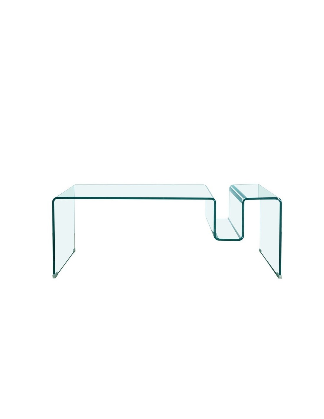 Mesa baja rectangular de diseño, cristal curvado de 12 mm. de espesor