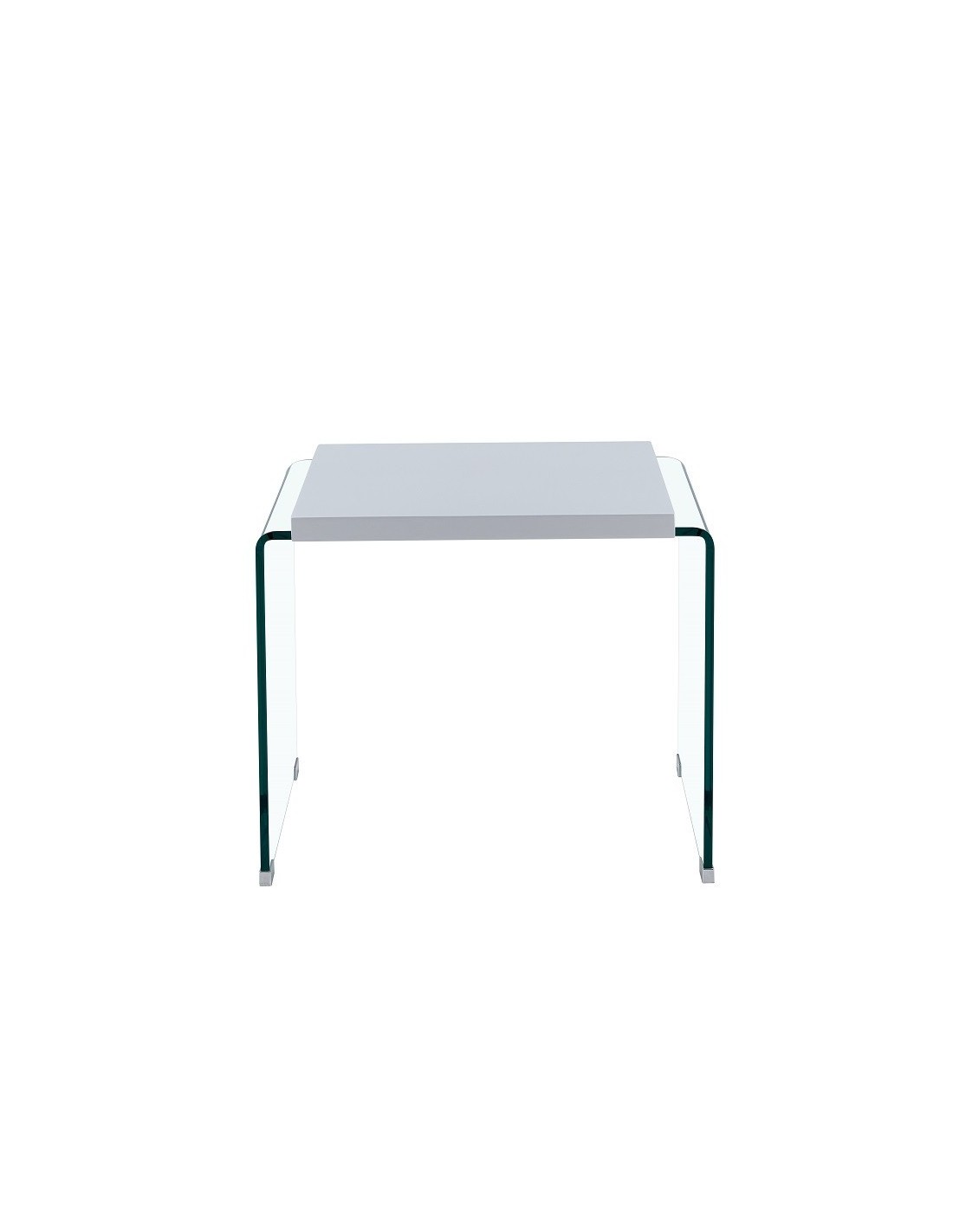 Mesa ARISTON, baja, lacada blanca, cristal, 60 x 63 cms