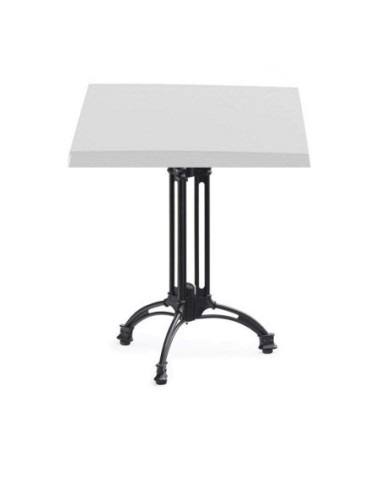 Mesa de fundición de aluminio de 3 puntas, revestida con pintura de resina negro mate y tapa de 60 x 60 cms. Color a elegir. Uso interior y exterior.