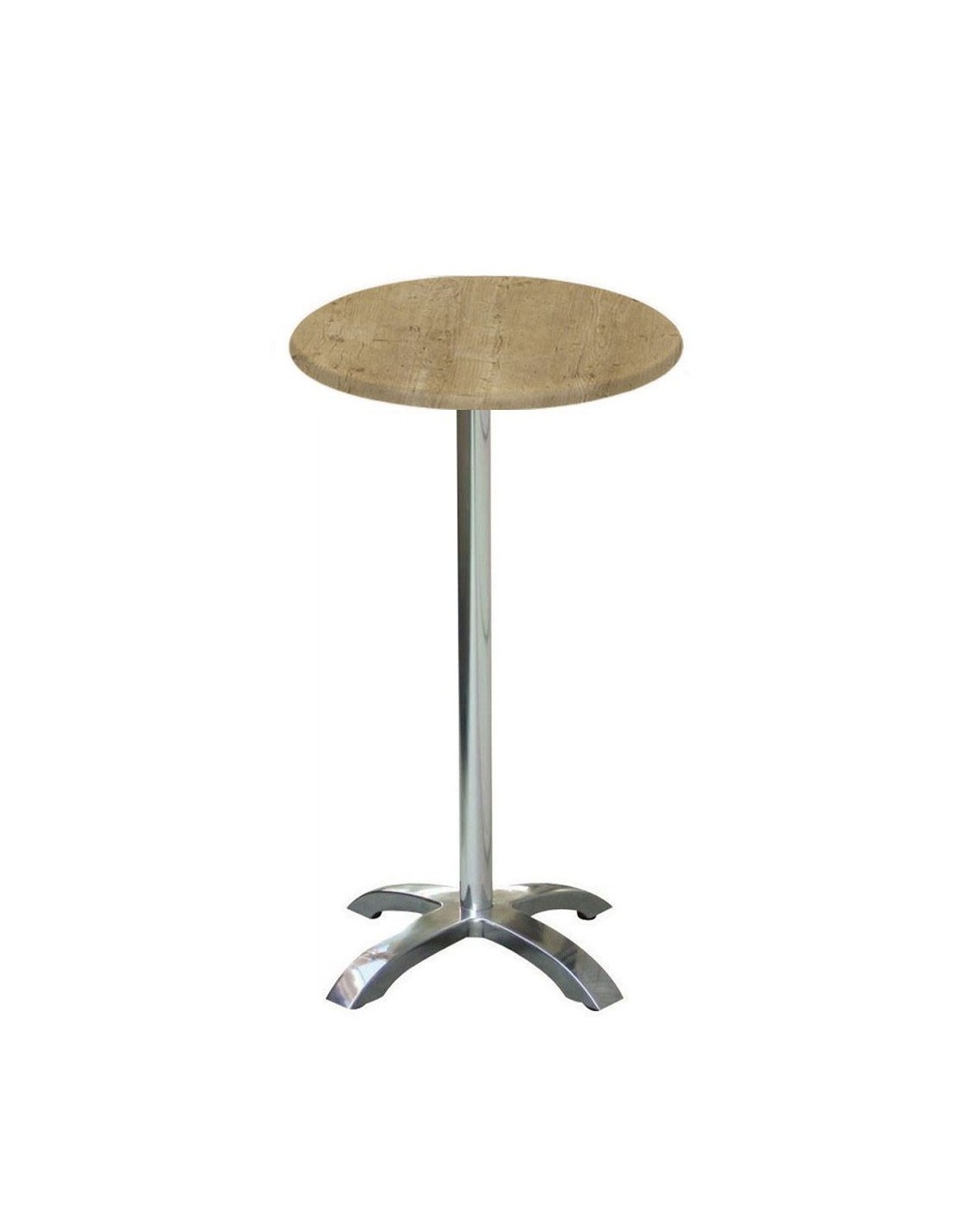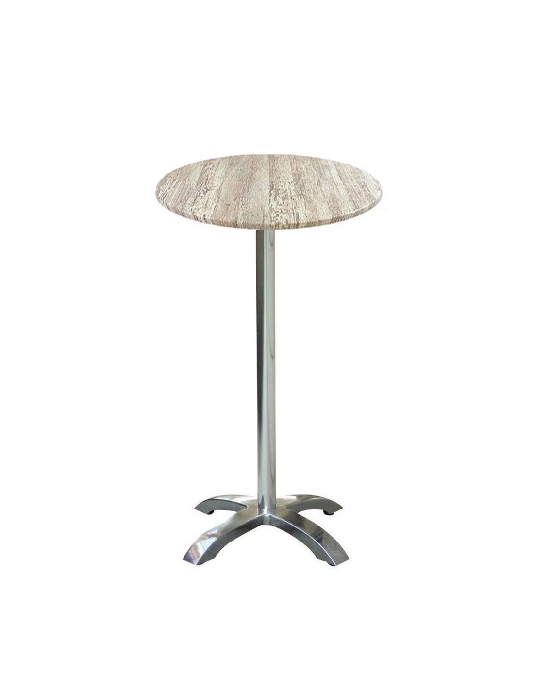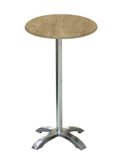Mesa alta de aluminio, pie central 4 radios, tapa de 60 cms de diámetro. Color a elegir. Uso en exteriores e interiores