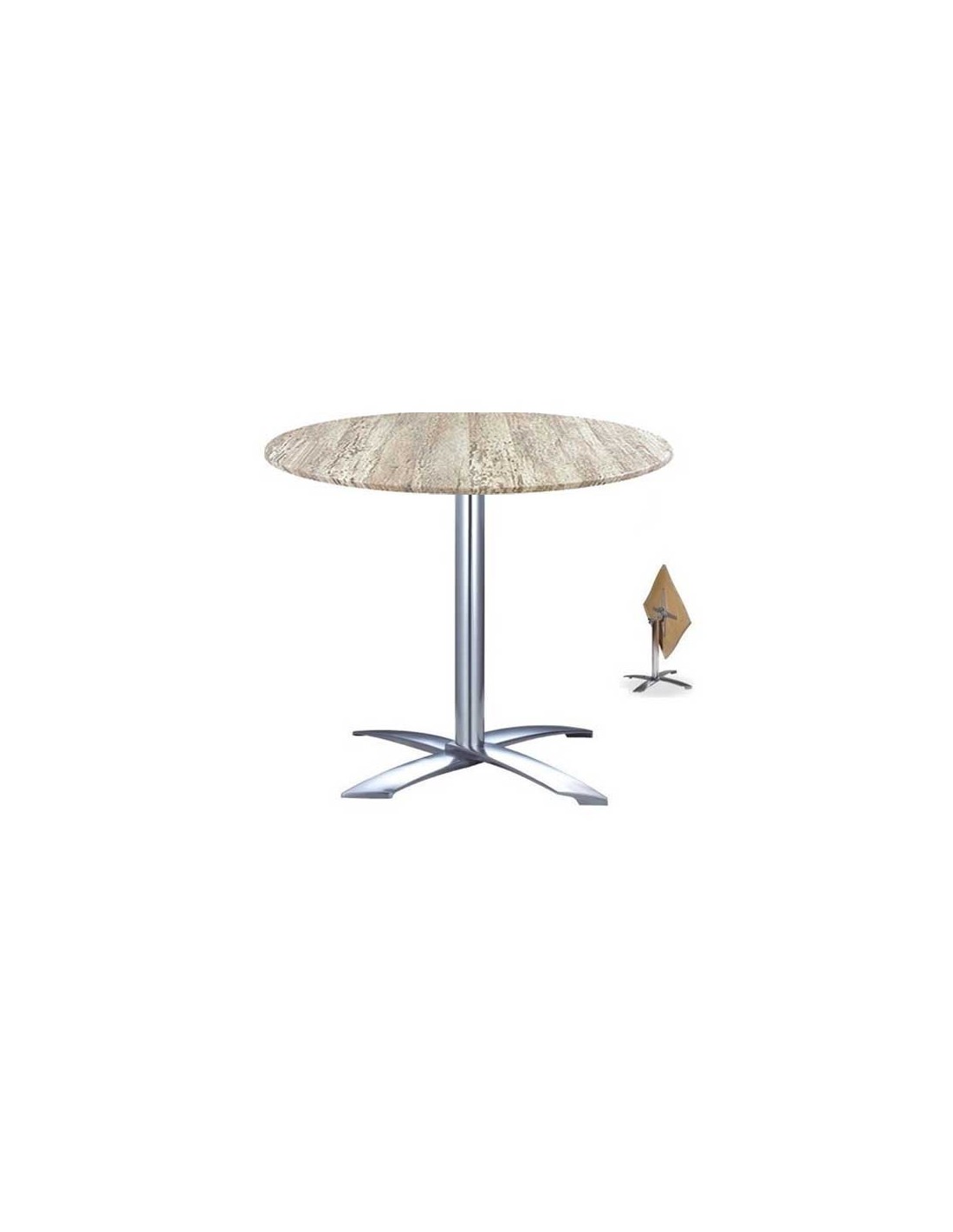 Mesa formada por base de aluminio, abatible, 4 brazos y tapa de 70 cms de diámetro. Color a elegir. Uso en exteriores e interiores