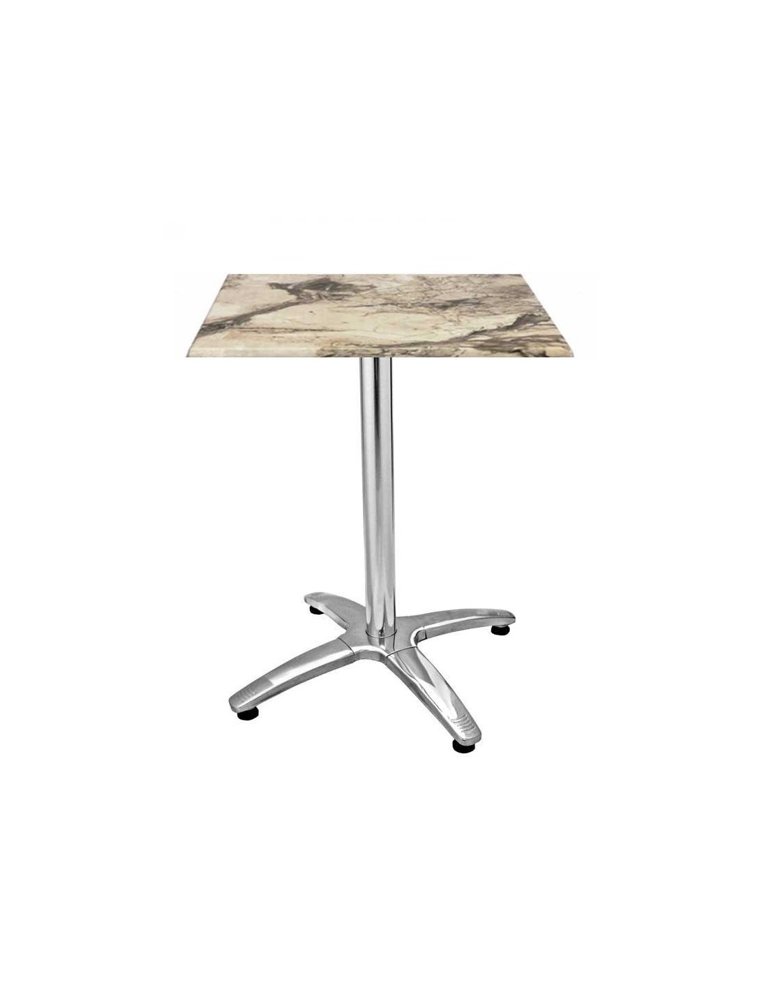 Mesa ROMA, aluminio, 4 radios, base de 70 cms y tapa 60 x 60 cms. Color a elegir