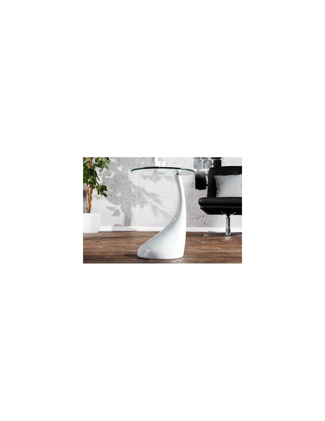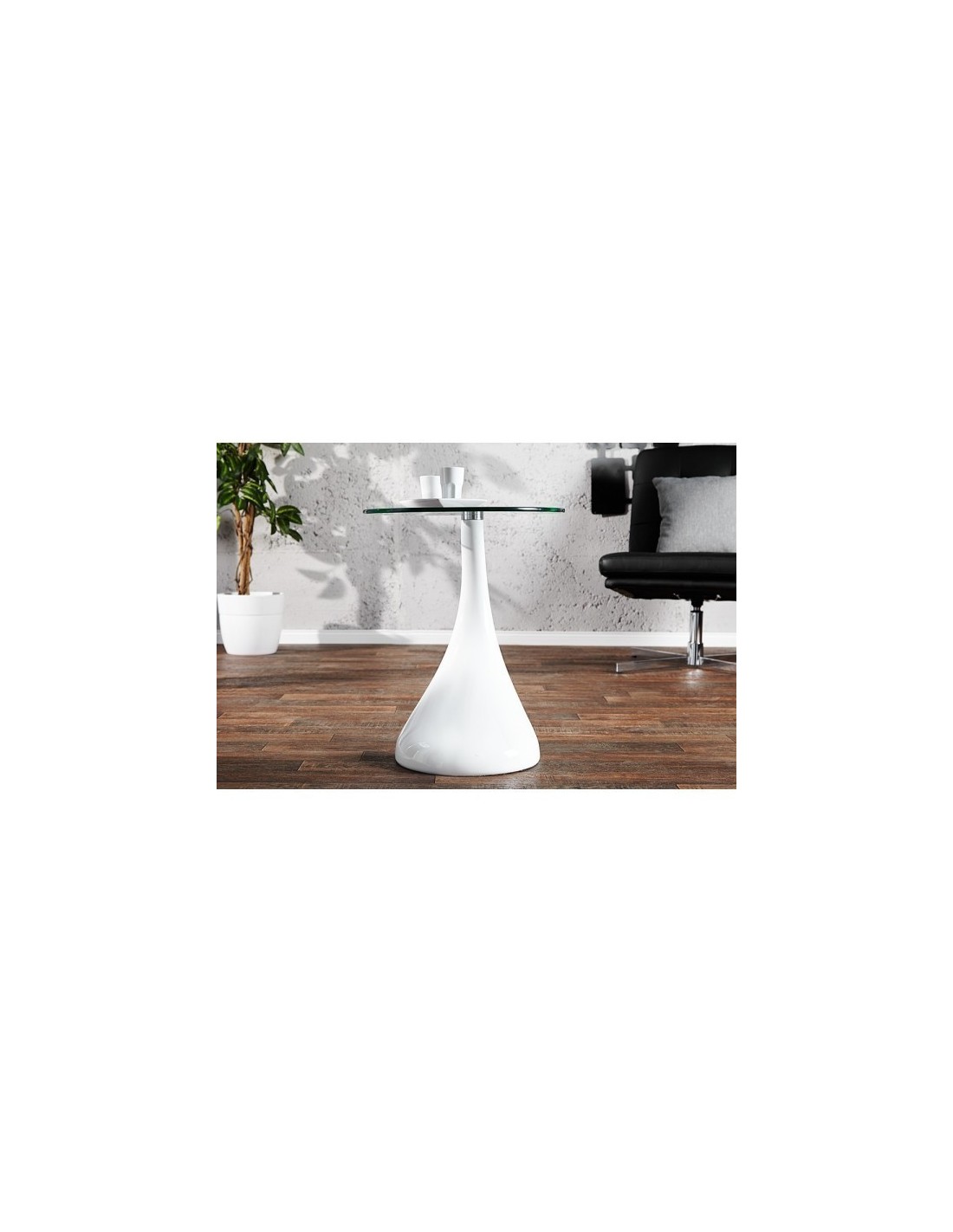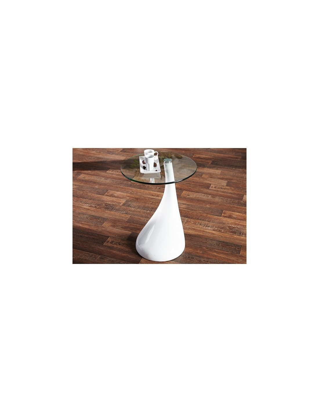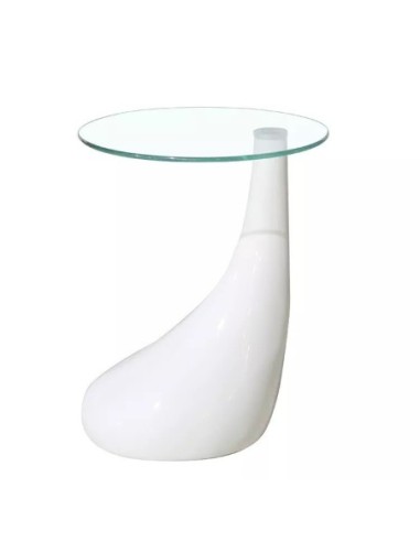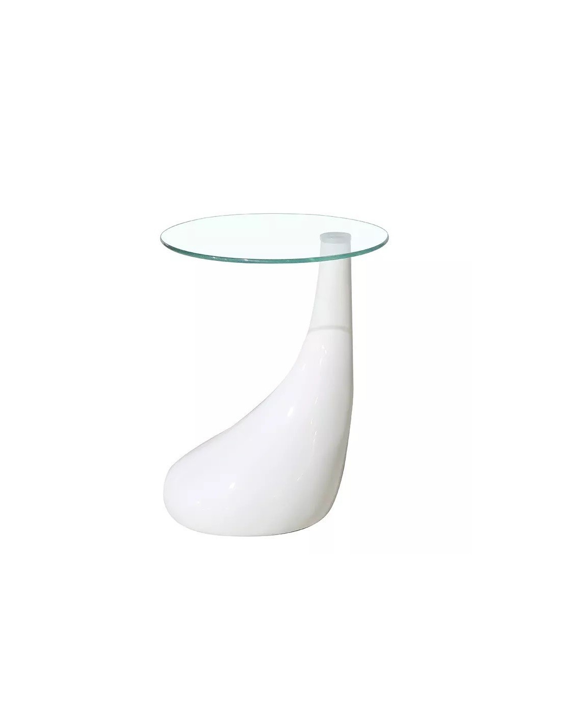 Mesa PEAR, baja, blanca, cristal, 50 cms de diámetro