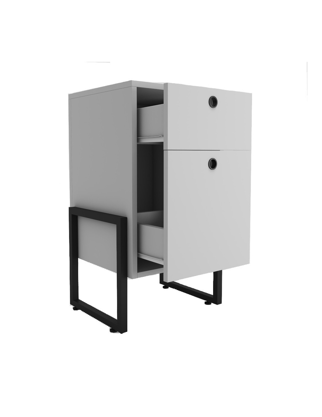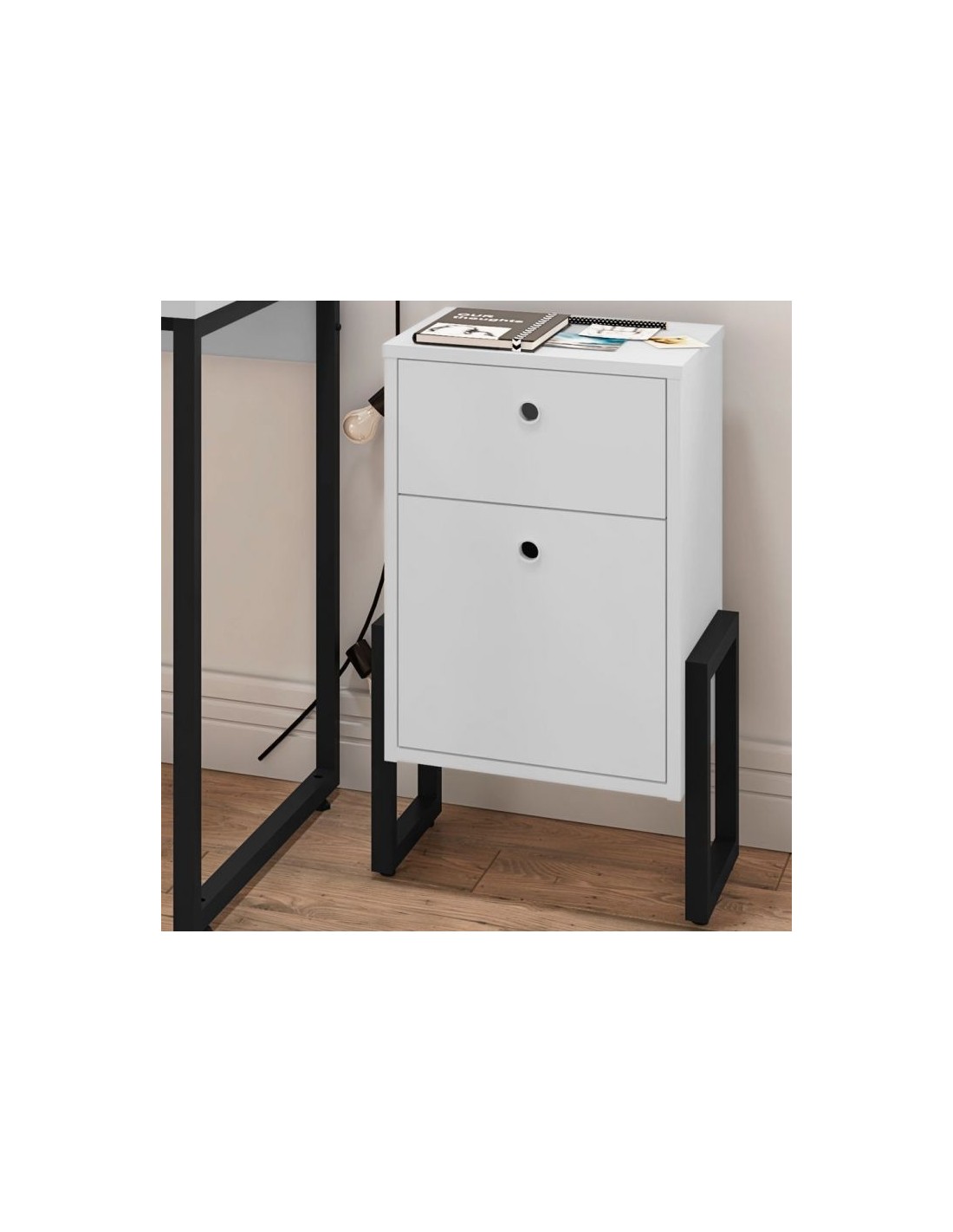 Cajonera WOLLY, multiusos, metal negro, 2 cajones, MDP blanco