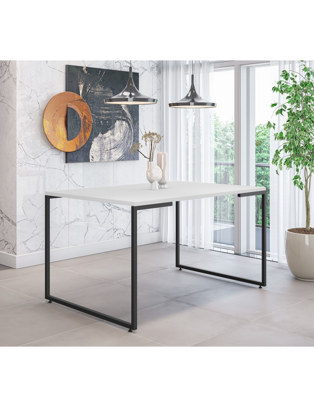 Mesa PORTO 135, metal negro, tapa MDP color blanco, 135 x 90 cms