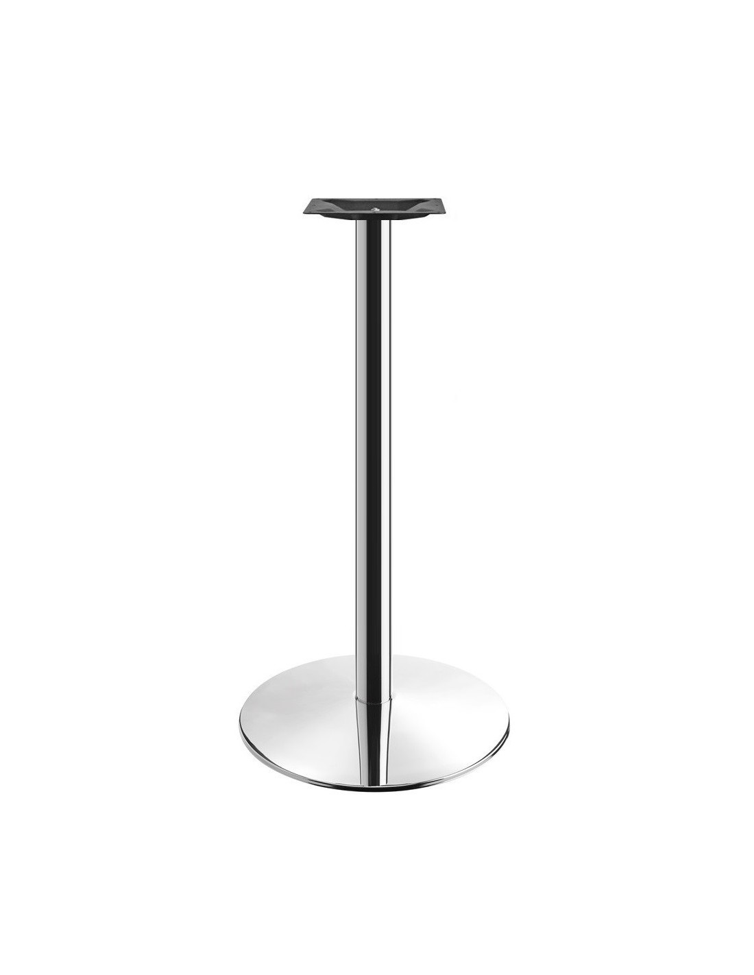Base de mesa con pie central, acero inoxidable acabado pulido brillo. Base de 45 cms. de diámetro. Altura 110 cms. Para uso en interiores. Mesa de altura 72 cms a juego