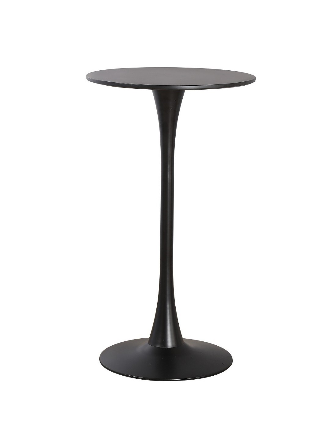 Mesa TUL, alta, metal, negra, tapa negra de 60 cms de diámetro