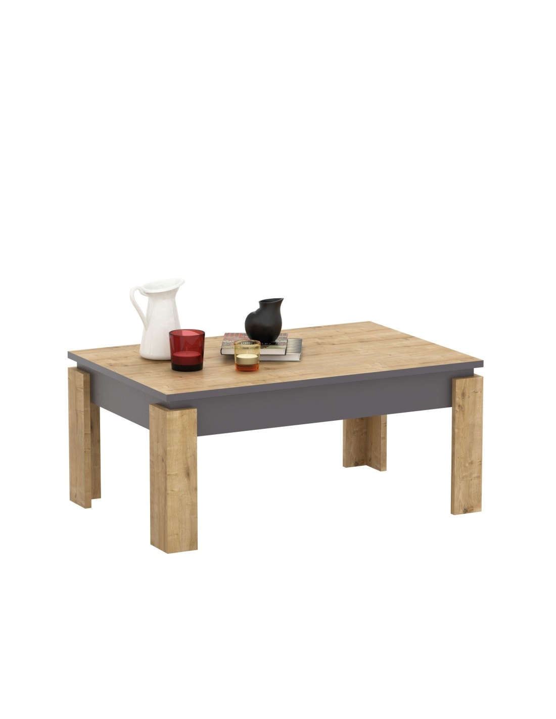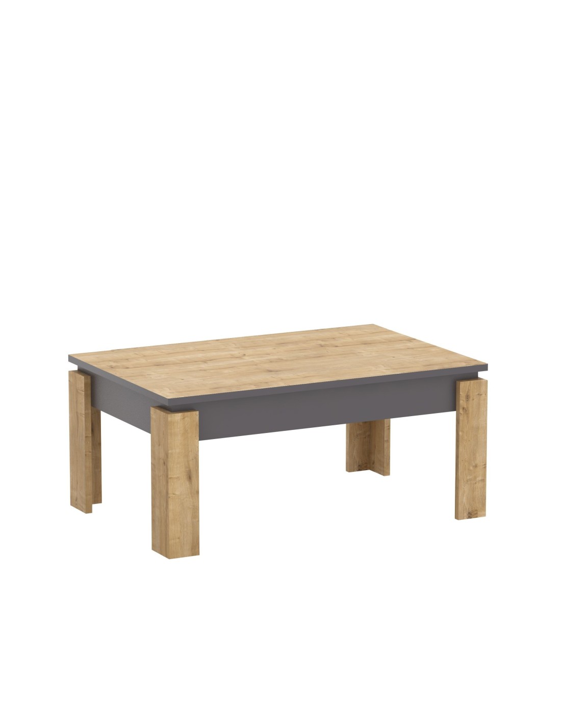 Mesa baja PHILIPPA, biIaminado roble con gris oscuro, 90 cms.