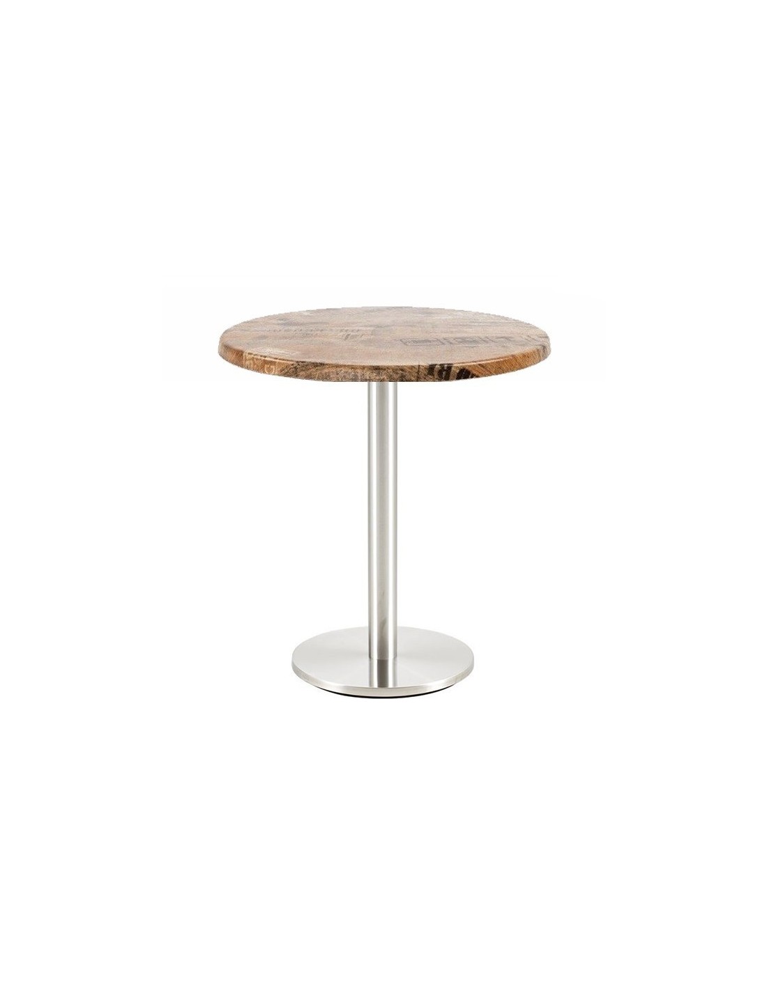 Mesa con pie central, acero inoxidable pulido - acabado satinado -. Base circular de 45 cms y tapa de 70 cms de diámetro, a elegir. Uso en interiores.
