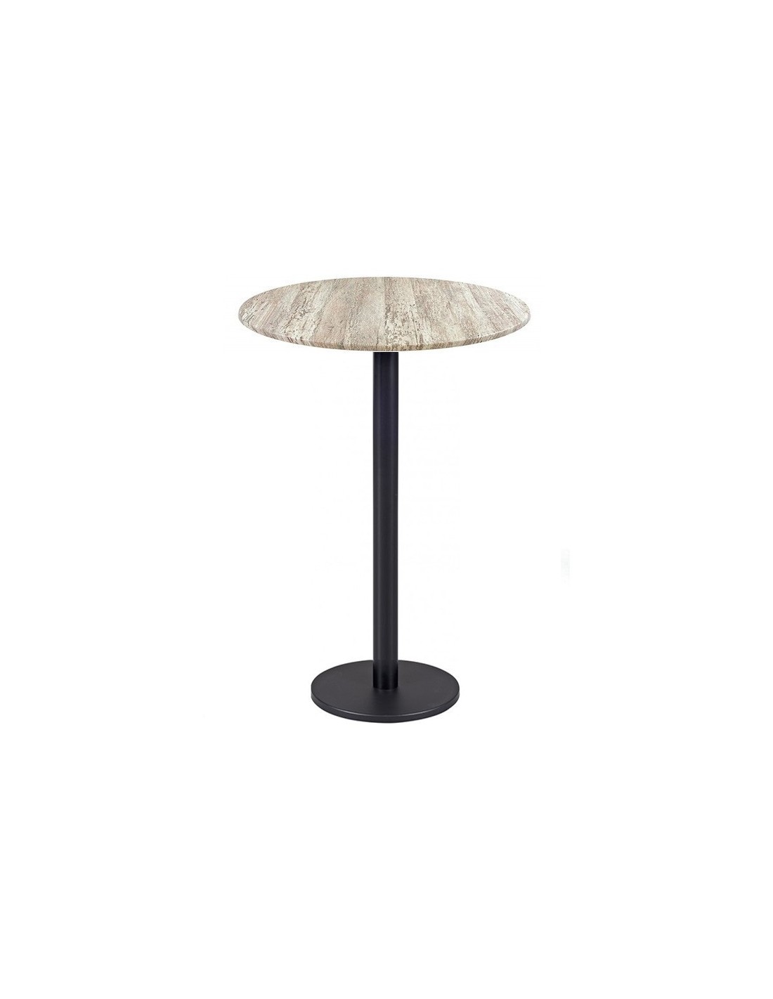 Mesa alta de diseño, multiusos, base de mesa de hierro + composite, revestida en epoxi color negro y tapa de 60 cms de diámetro a elegir.