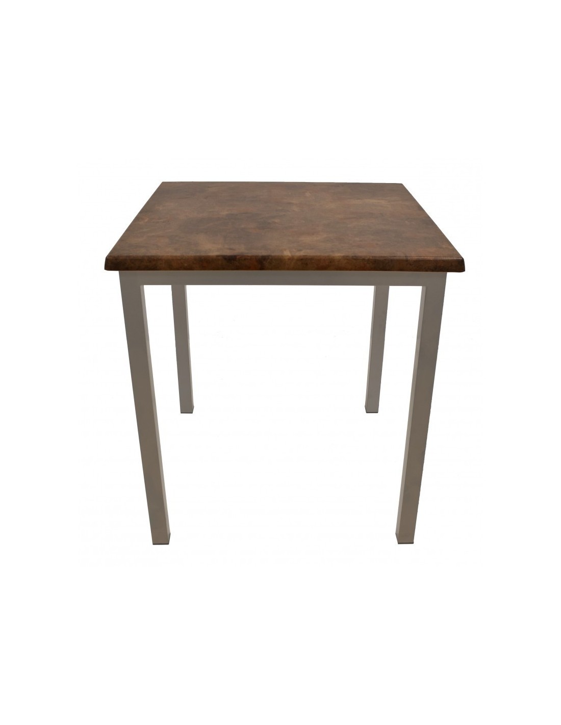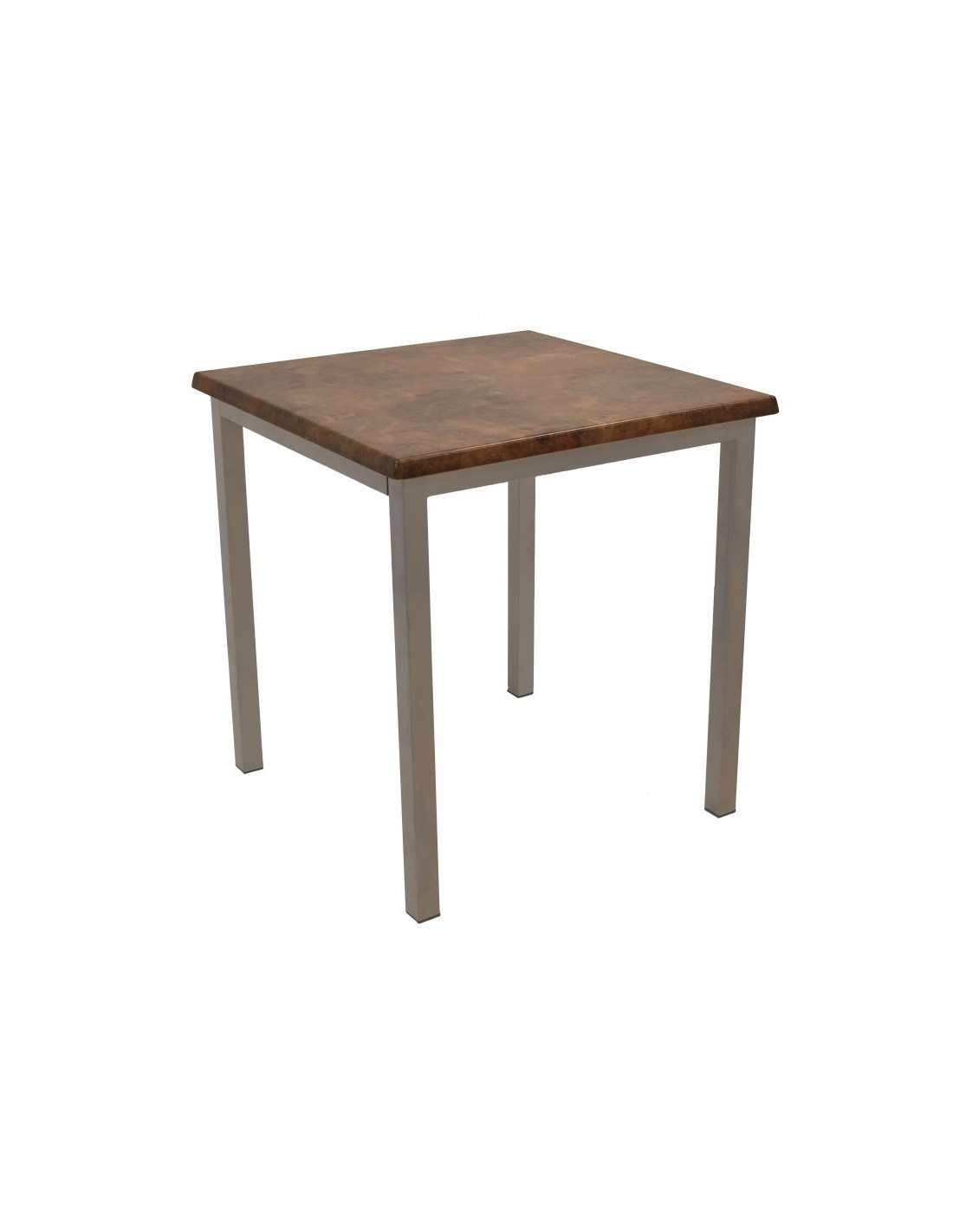 Mesa con armazón tubular de 4 patas de 40x40 mm., con acabado gris plata y tapa 70x70 cms, color a elegir