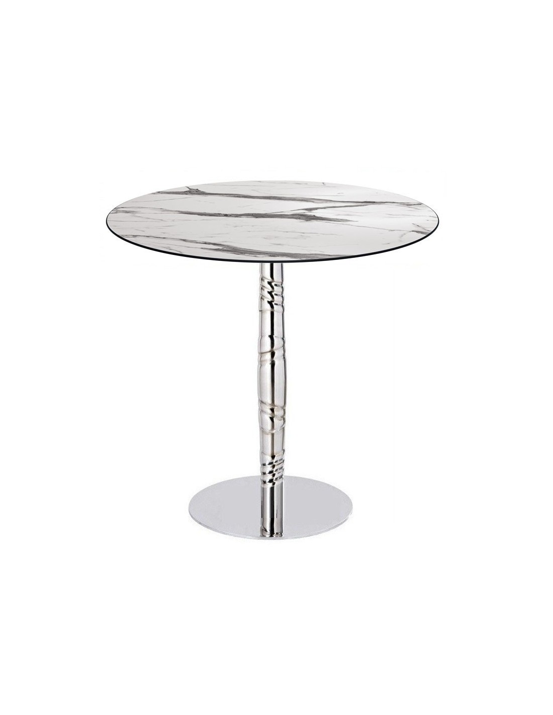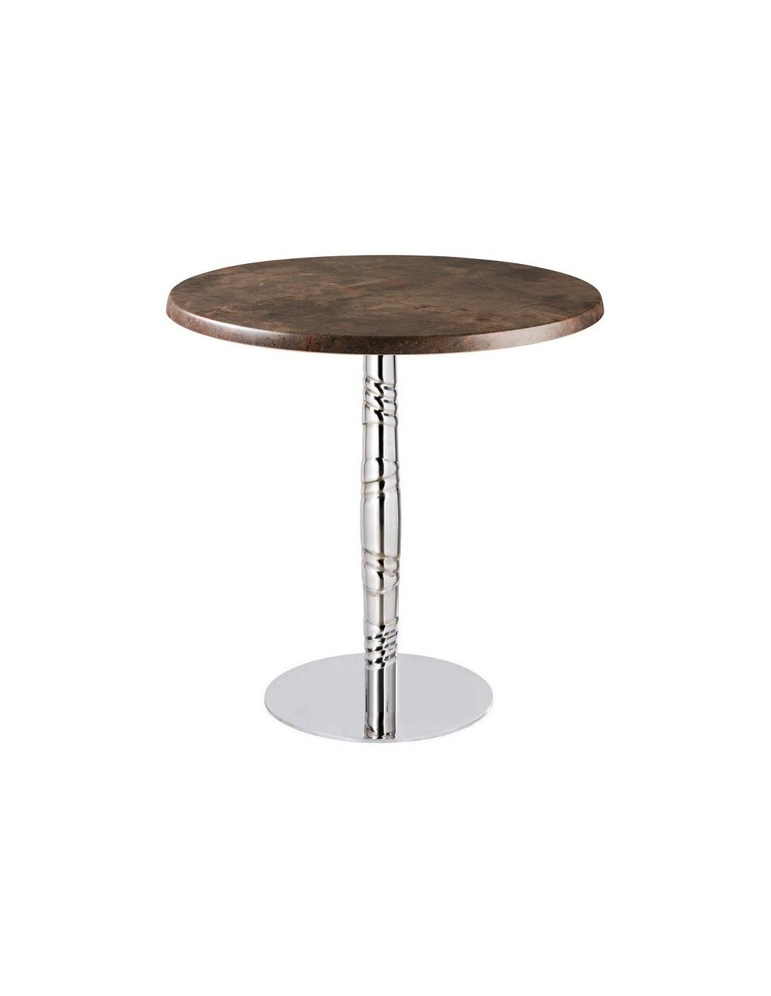 Mesa de diseño, multiusos, base de acero inoxidable y tapa de 70 cms  de diámetro, a elegir.