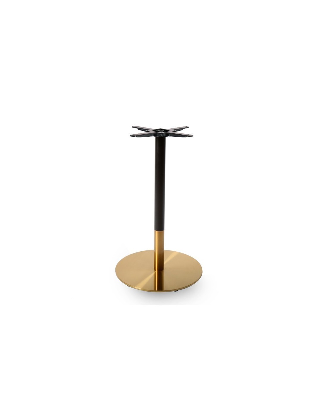 -Base de mesa con plato de acero inoxidable 201, acabado dorado brillante y columna tubular acabado dorado y negro mate..