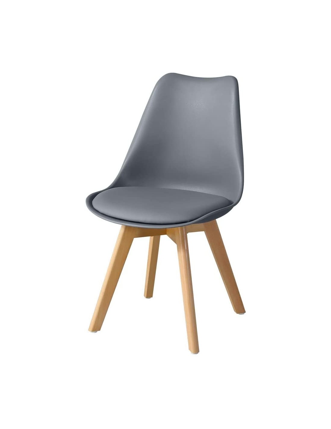 Silla de diseño, madera de haya, carcasa de polipropileno gris oscuro, cojín de asiento en similpiel gris oscuro. Otros colores disponibles.