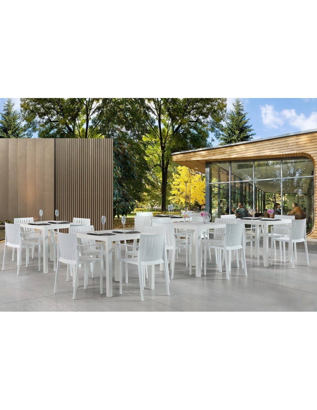 Sillón de diseño, apilable, polipropileno reforzado con fibra de vidrio de color blanco. Tratamiento anti rayos UV. Uso en exterior e interior. Otros colores disponibles. Silla, Taburete y Mesa a juego