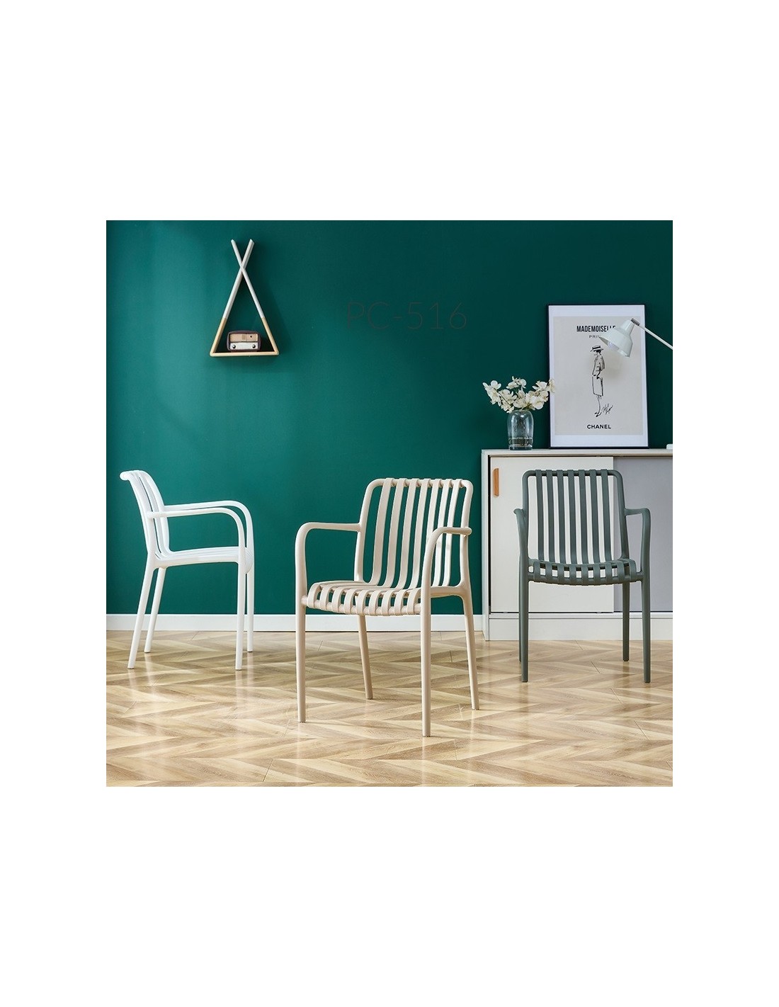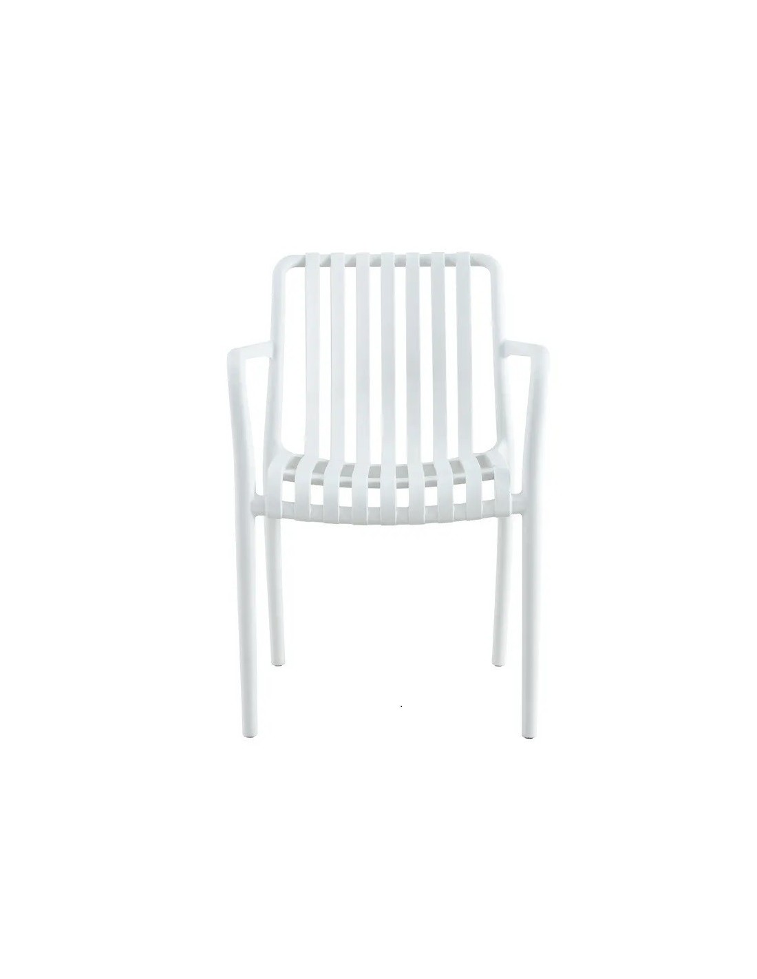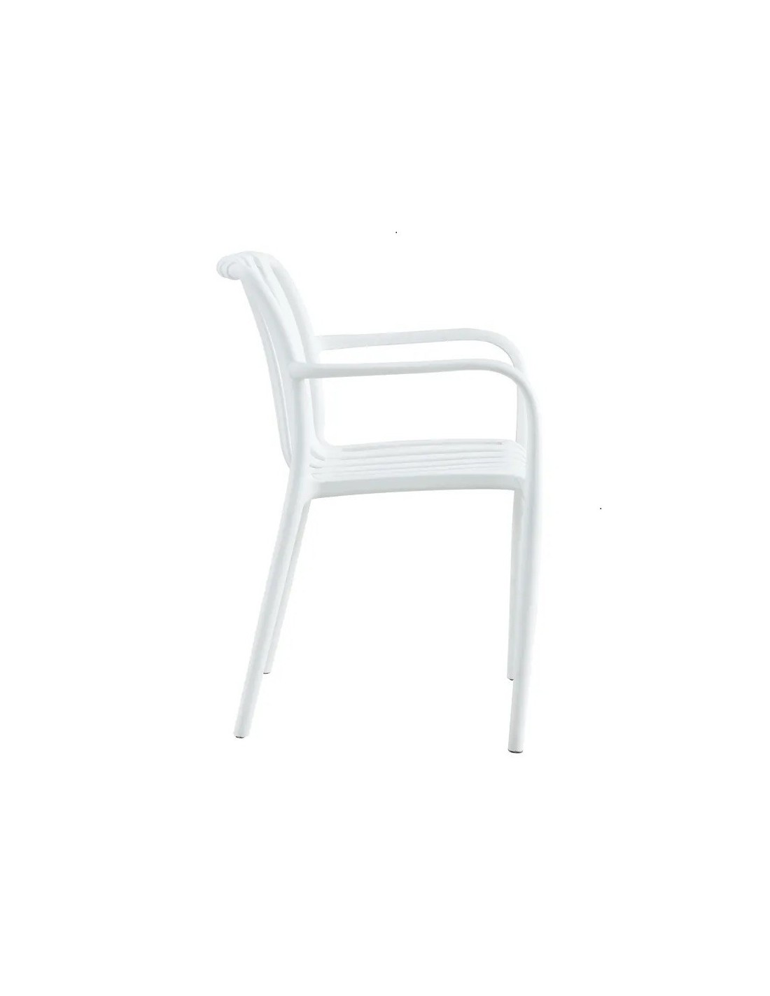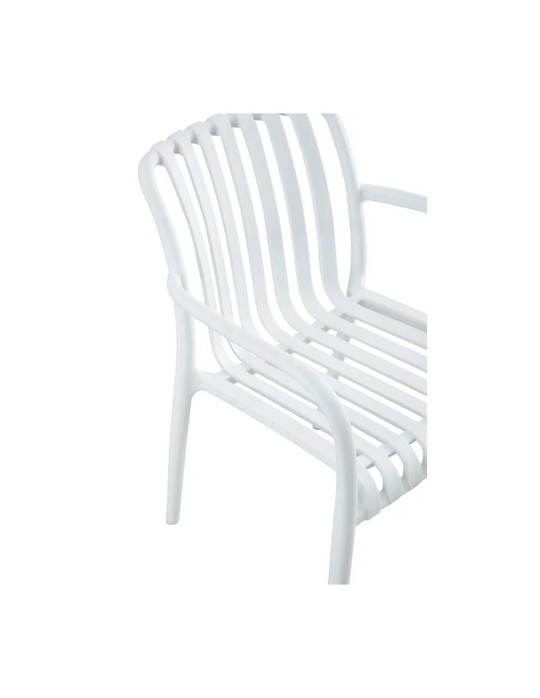 Sillón apilable, polipropileno blanco. Uso en exterior e interior. Otros colores disponibles. Mesas a juego.