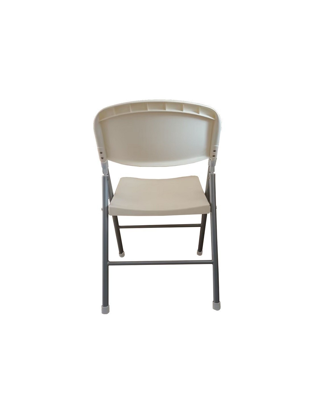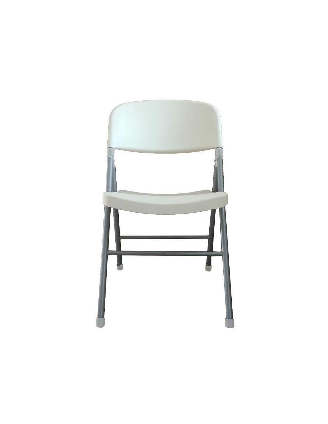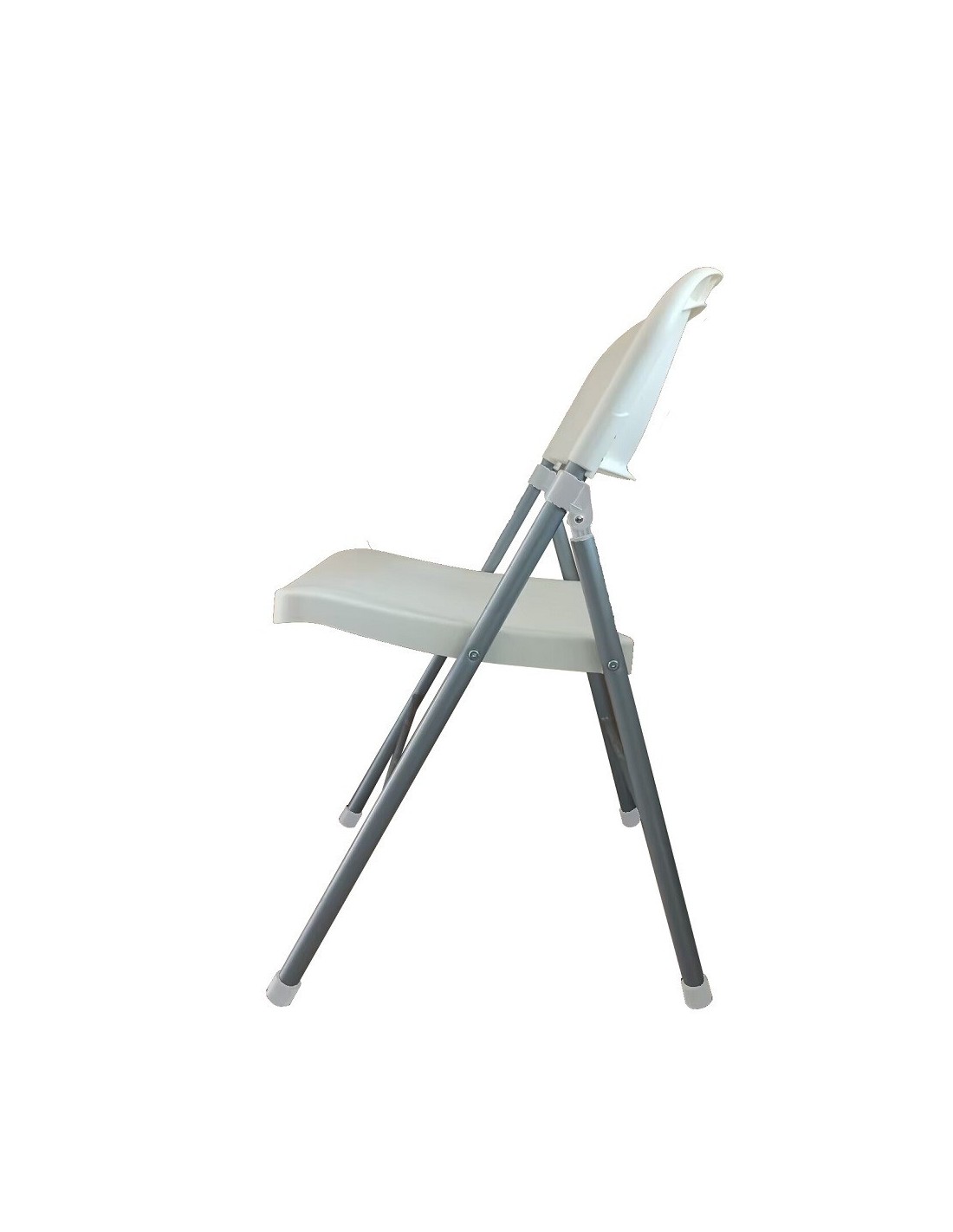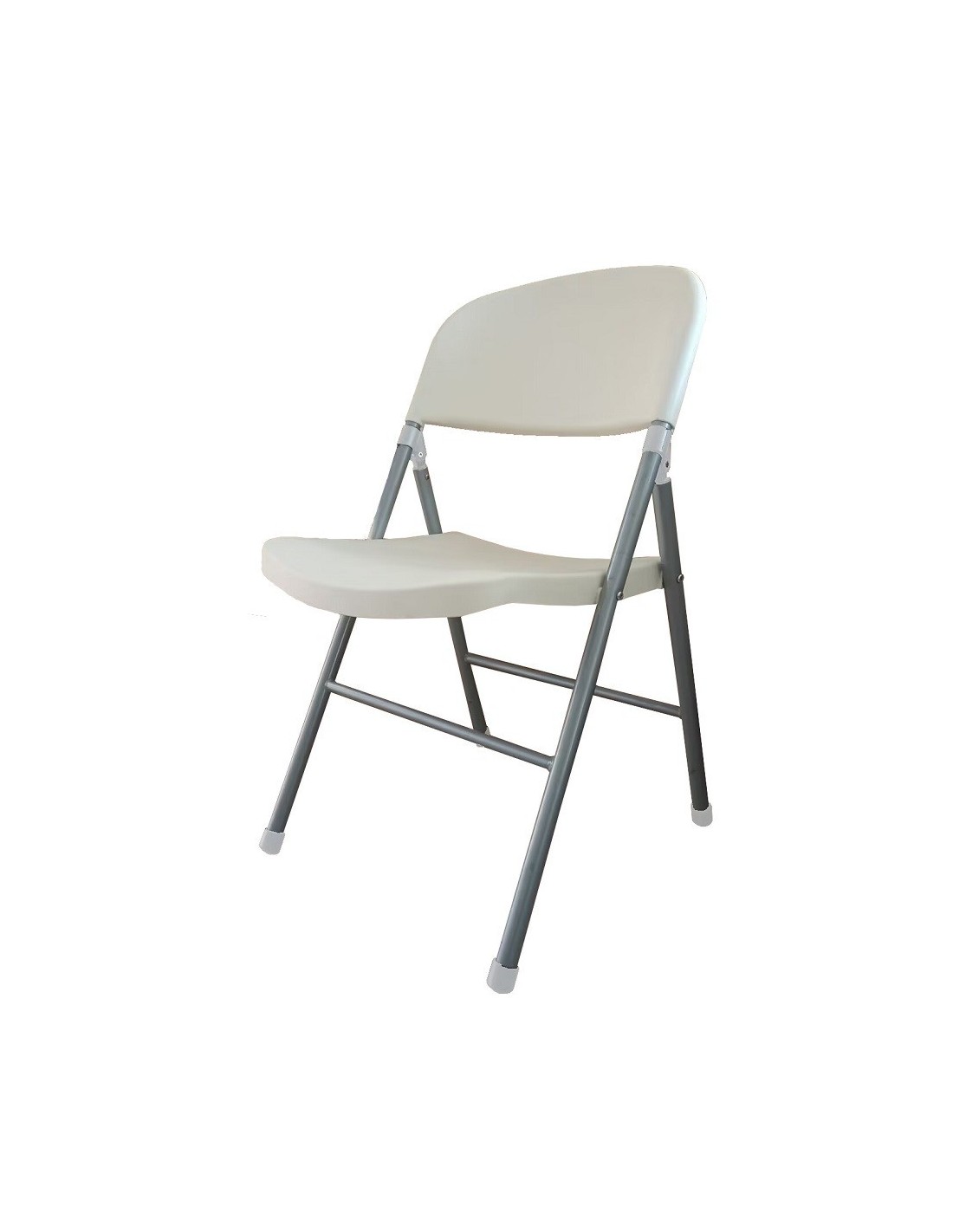 Silla plegable, armazón tubular con acabado en epoxi plata, asiento y respaldo de polipropileno de color blanco