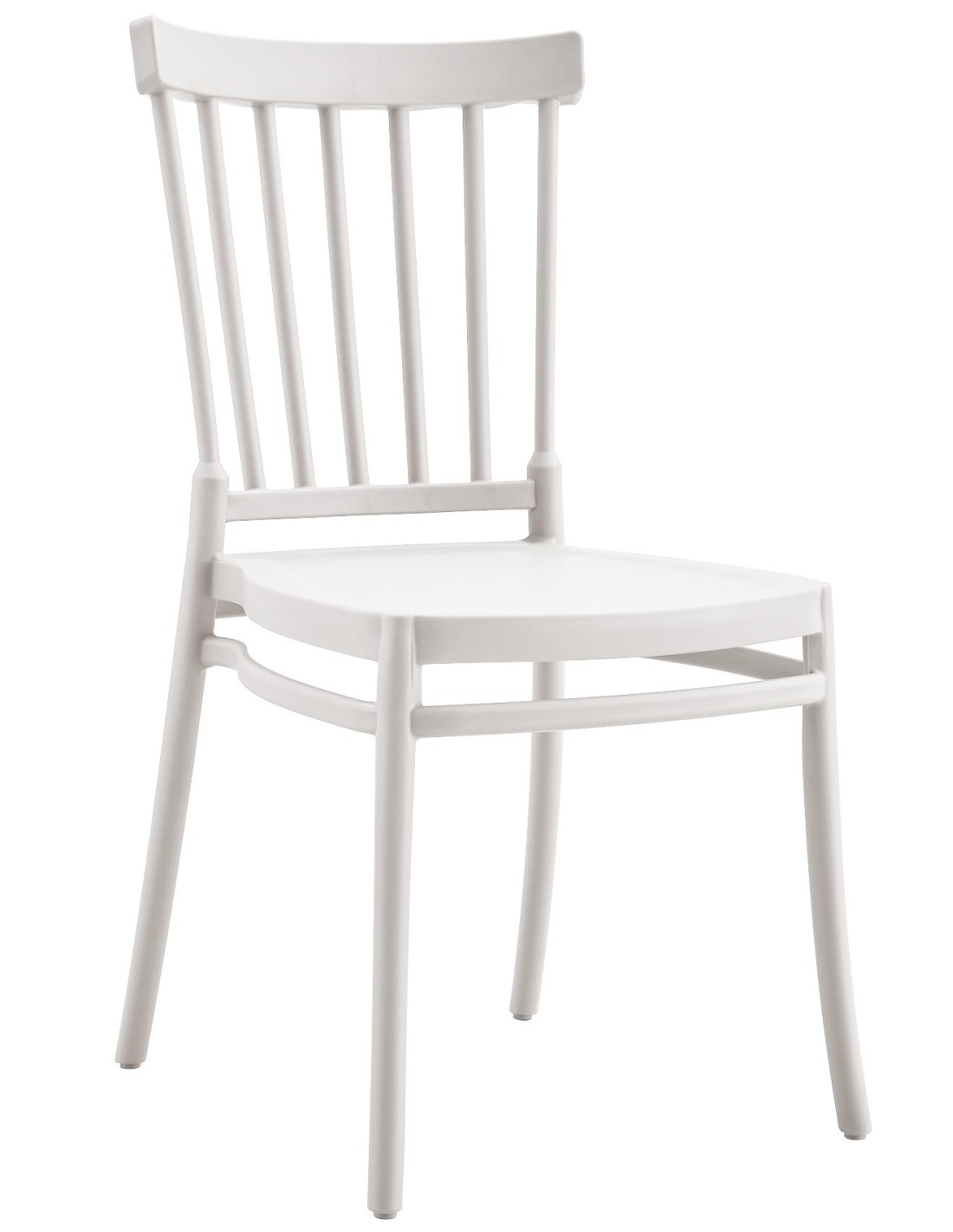 Silla MILOS NEW, apilable, tratamiento anti UV, polipropileno blanco