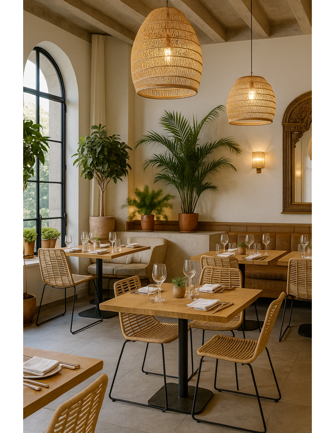-Asiento y respaldo de ratán plano sintético de color beige