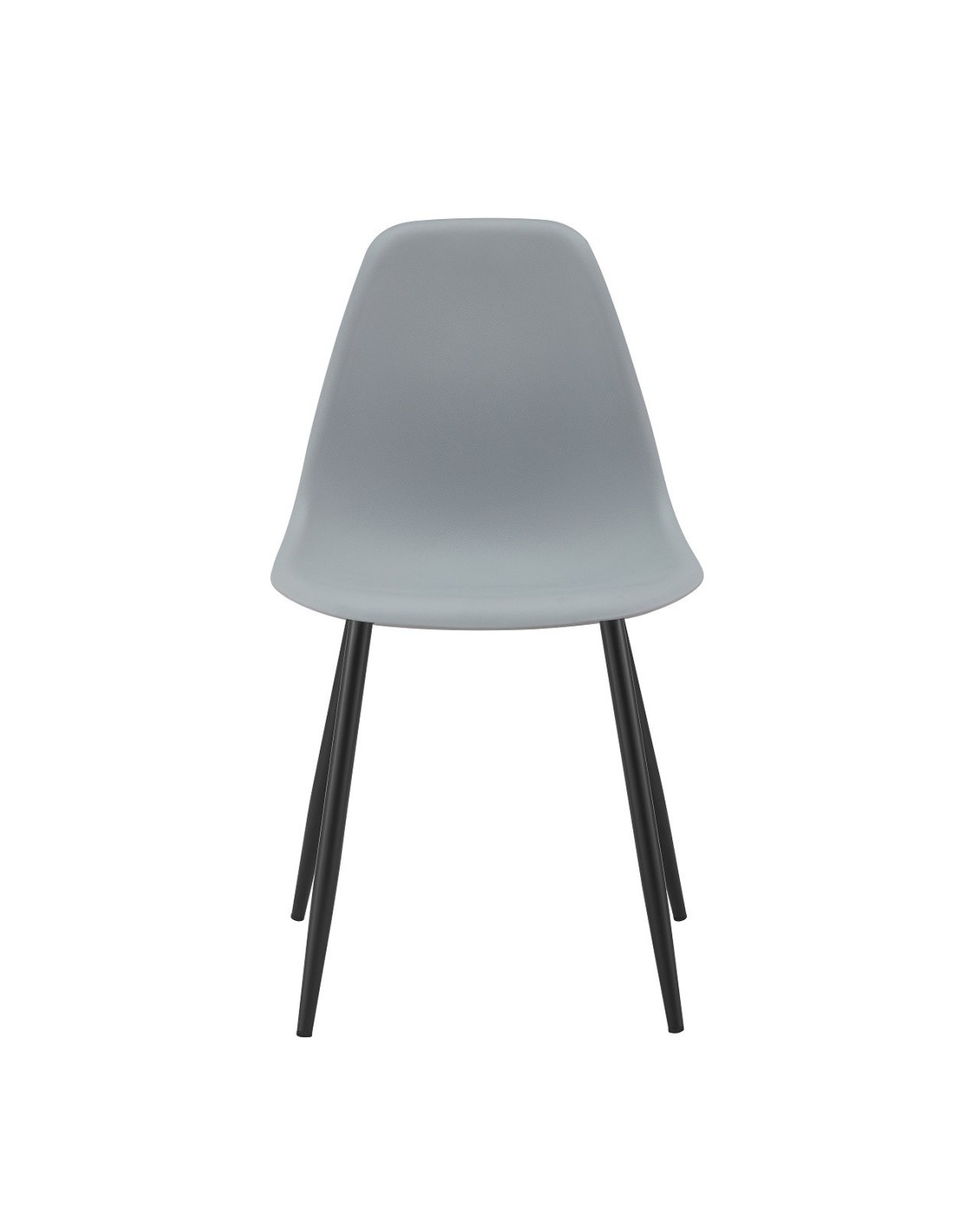 Silla de diseño, base de metal con acabado negro, asiento y respaldo de polipropileno inyectado de color gris. Otros colores disponibles. Taburete a juego