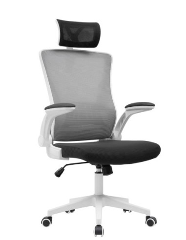 Sillón de oficina LAURO, alto, blanco, malla gris, asiento negro