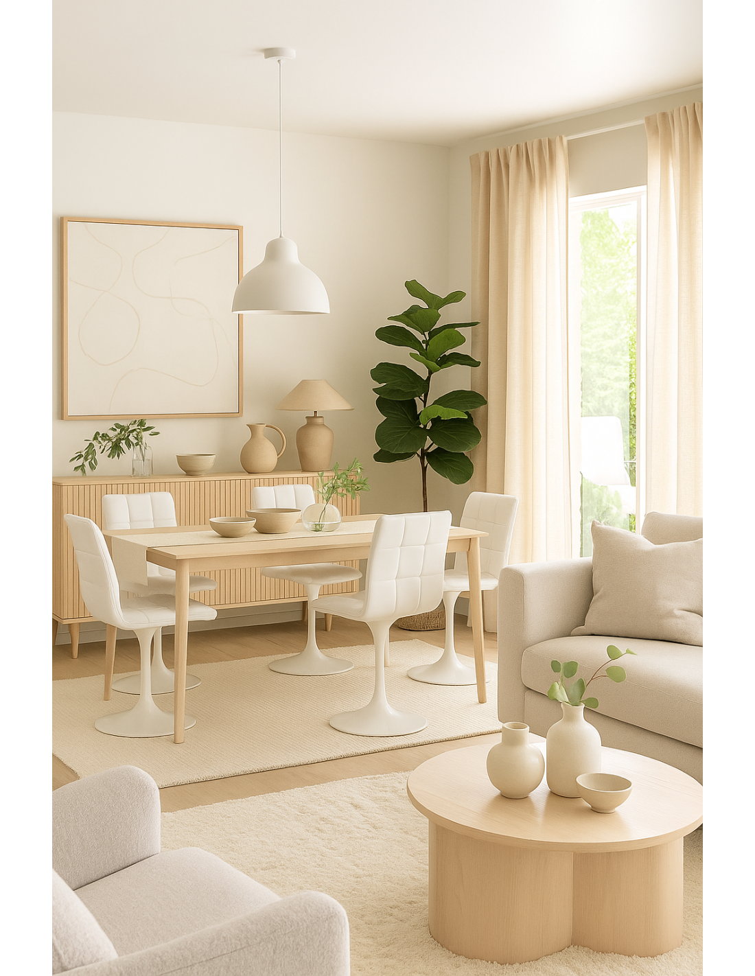 Sillón de diseño, multiusos, armazón de madera maciza de hevea, respaldo de contrachapado de madera de hevea, barnizado natural, asiento tapizado similpiel negra. Taburete a juego con el mismo tapizado y acabado