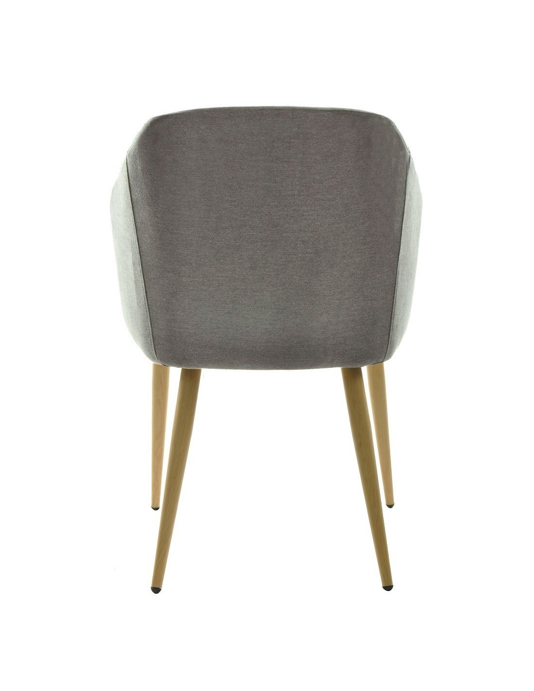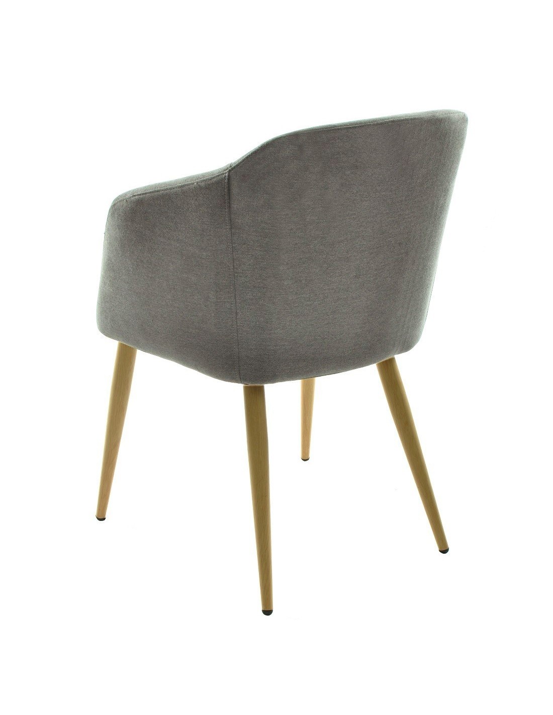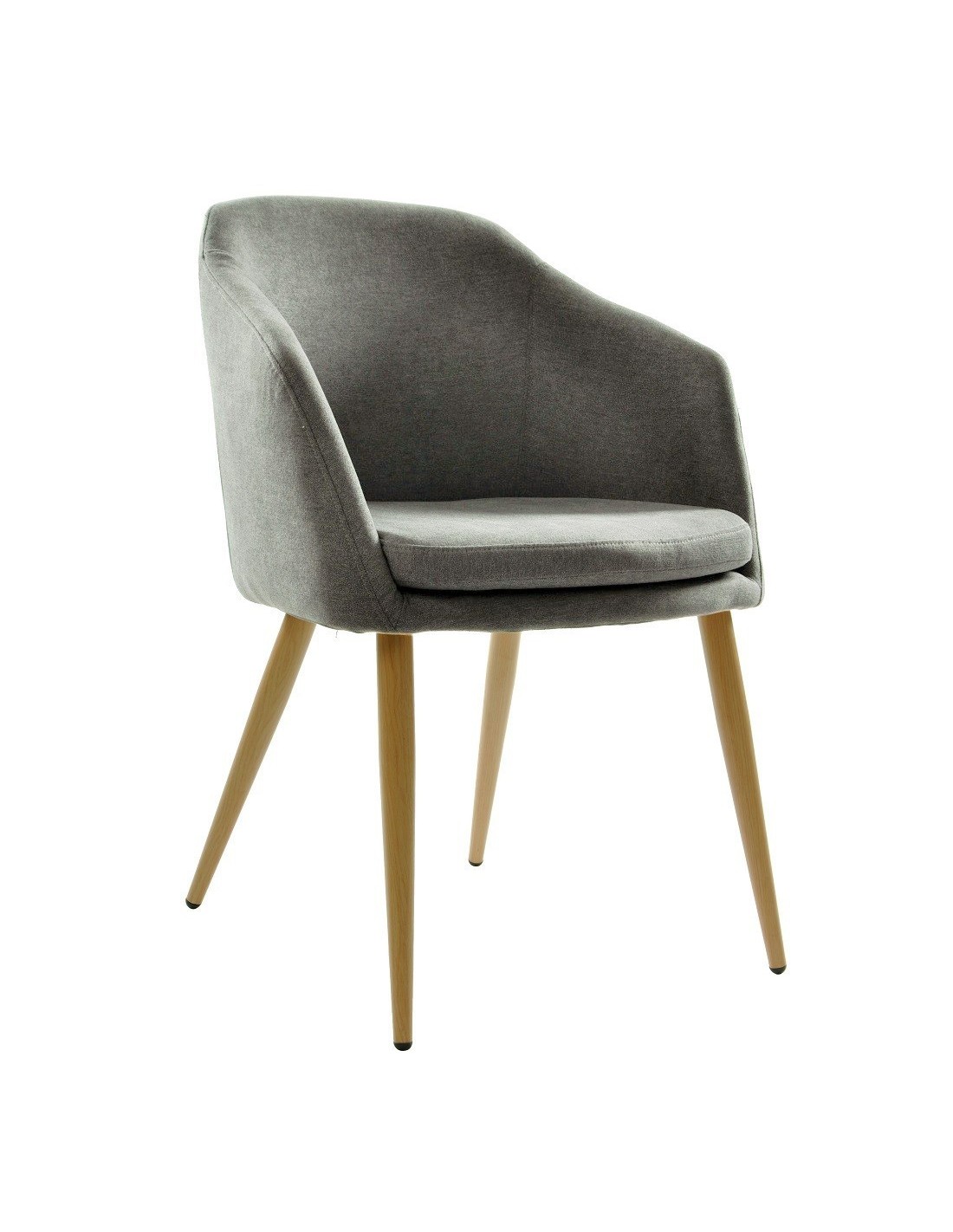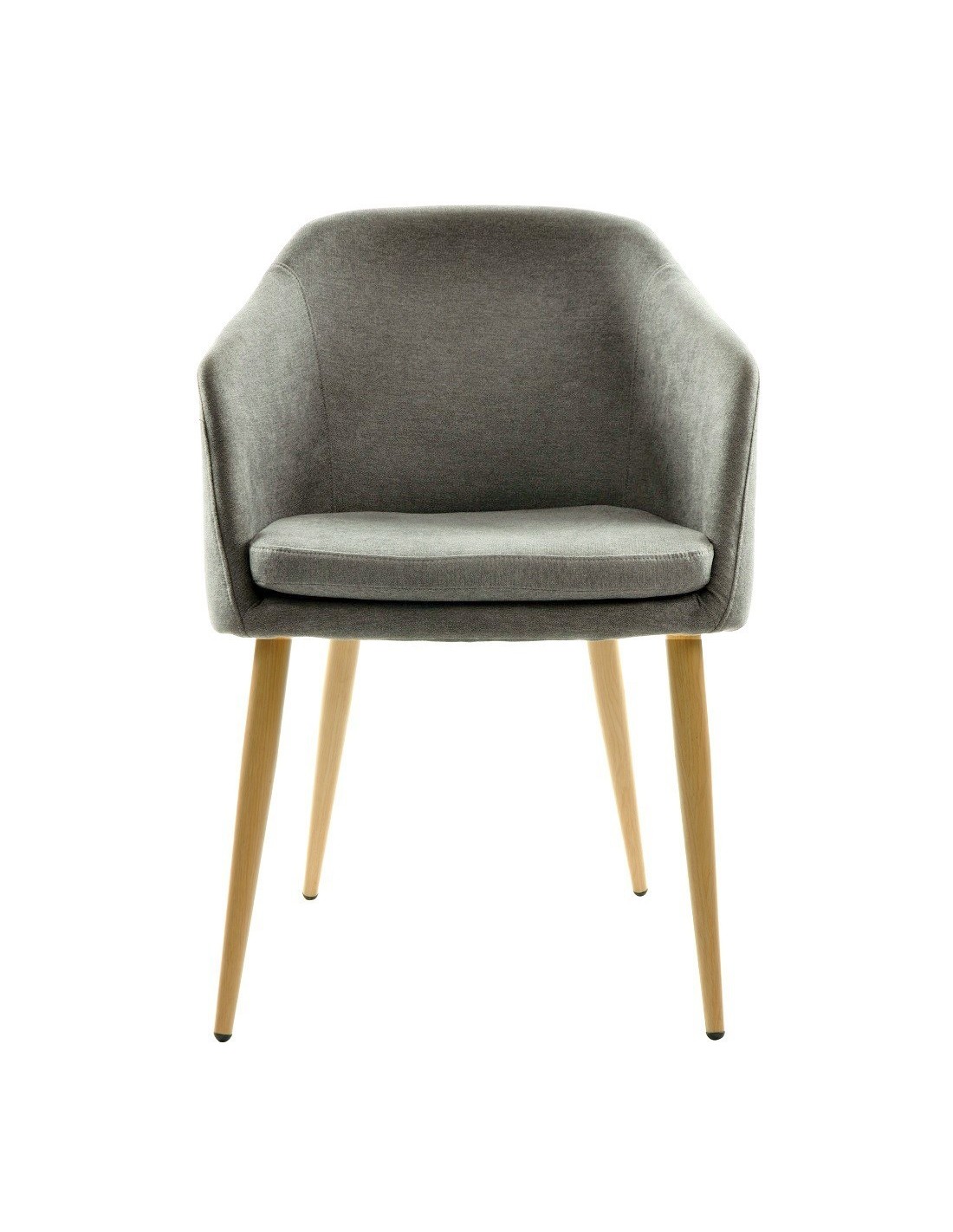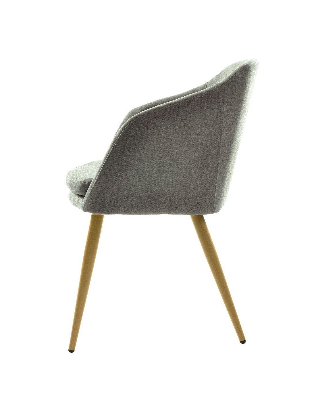 Sillón de diseño, patas metálicas con acabado imitación madera, asiento y respaldo tapizados en tejido linen gris oscuro. Otros colores disponibles.