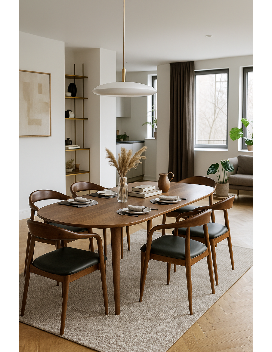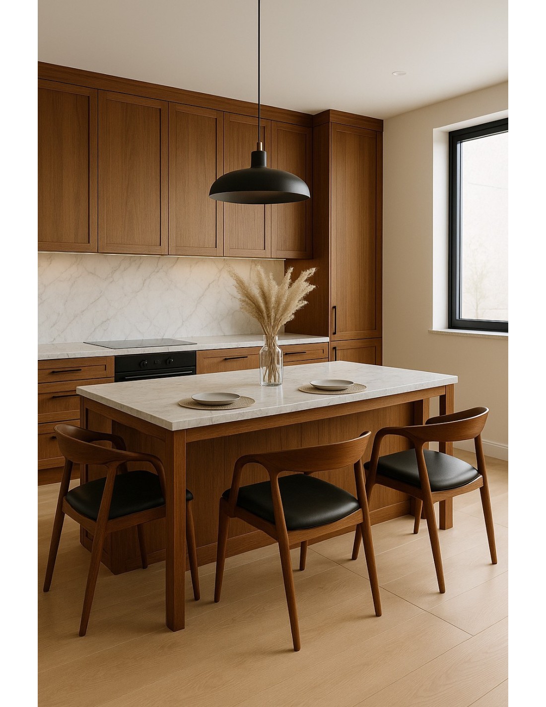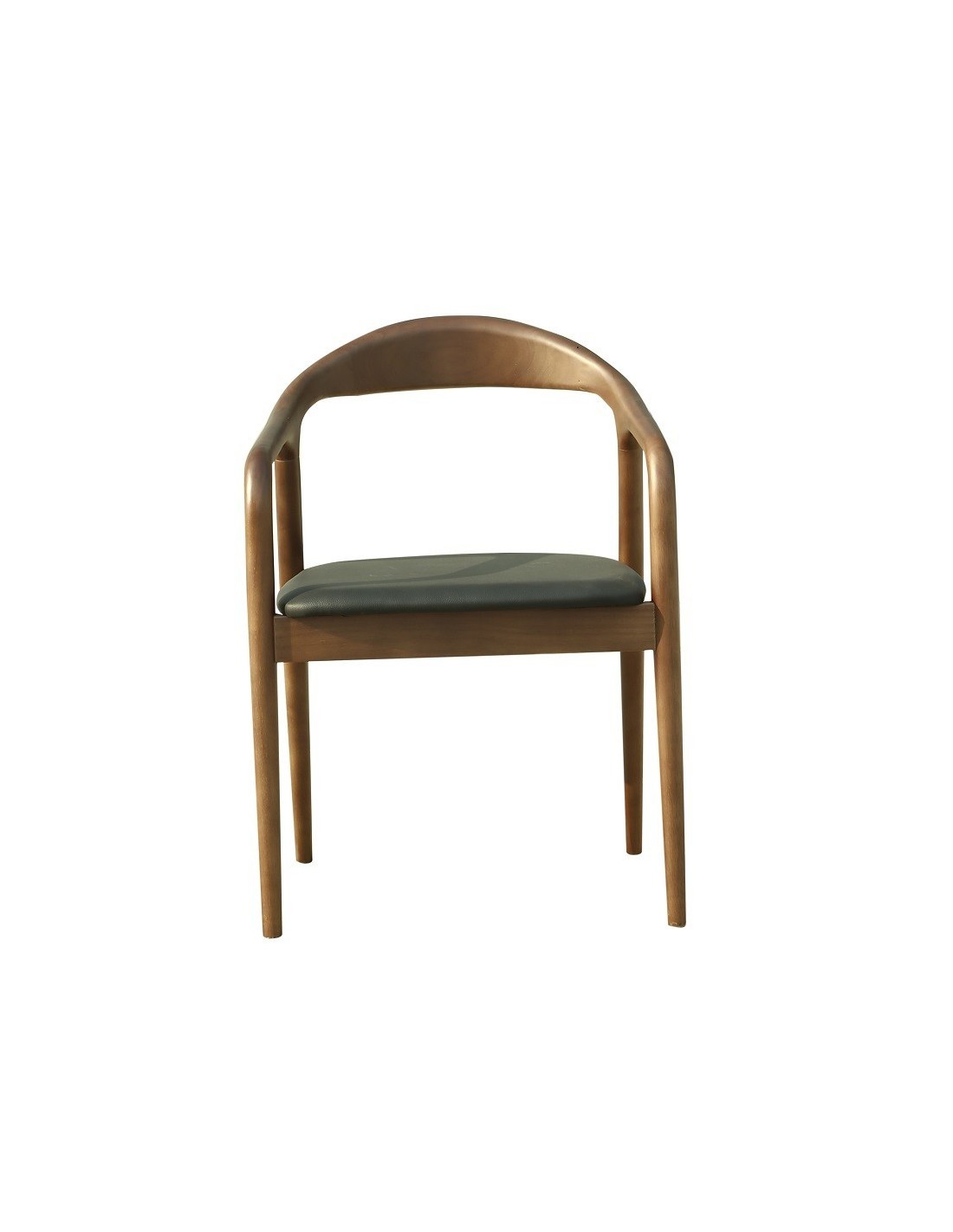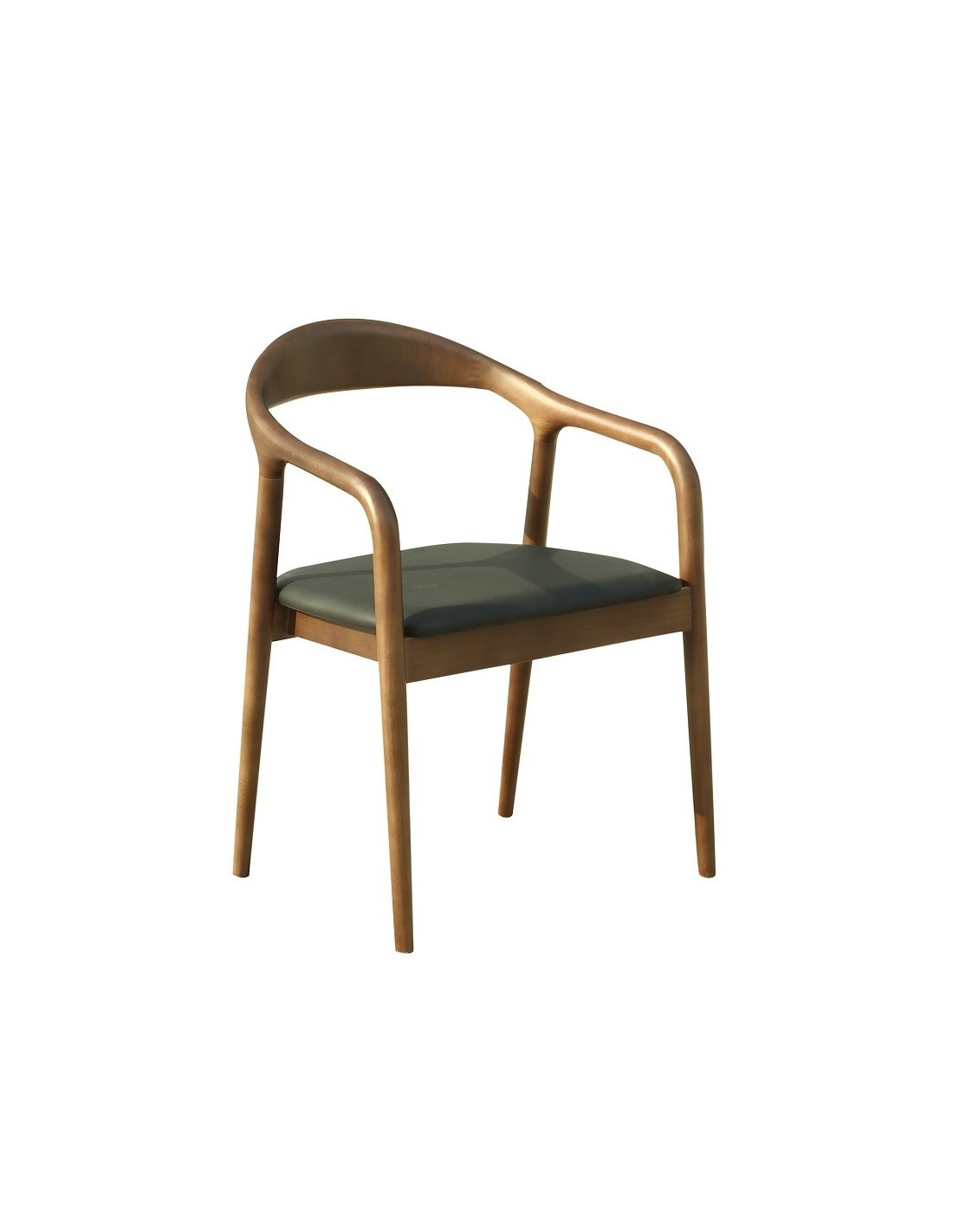 Sillón de diseño, multiusos, madera de haya, barnizado nogal, asiento tapizado similpiel negro