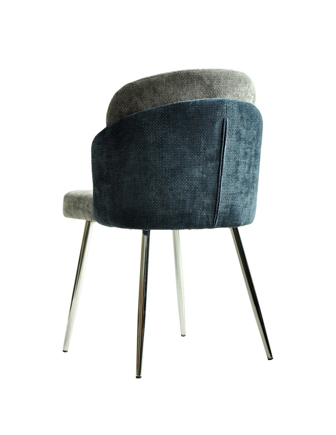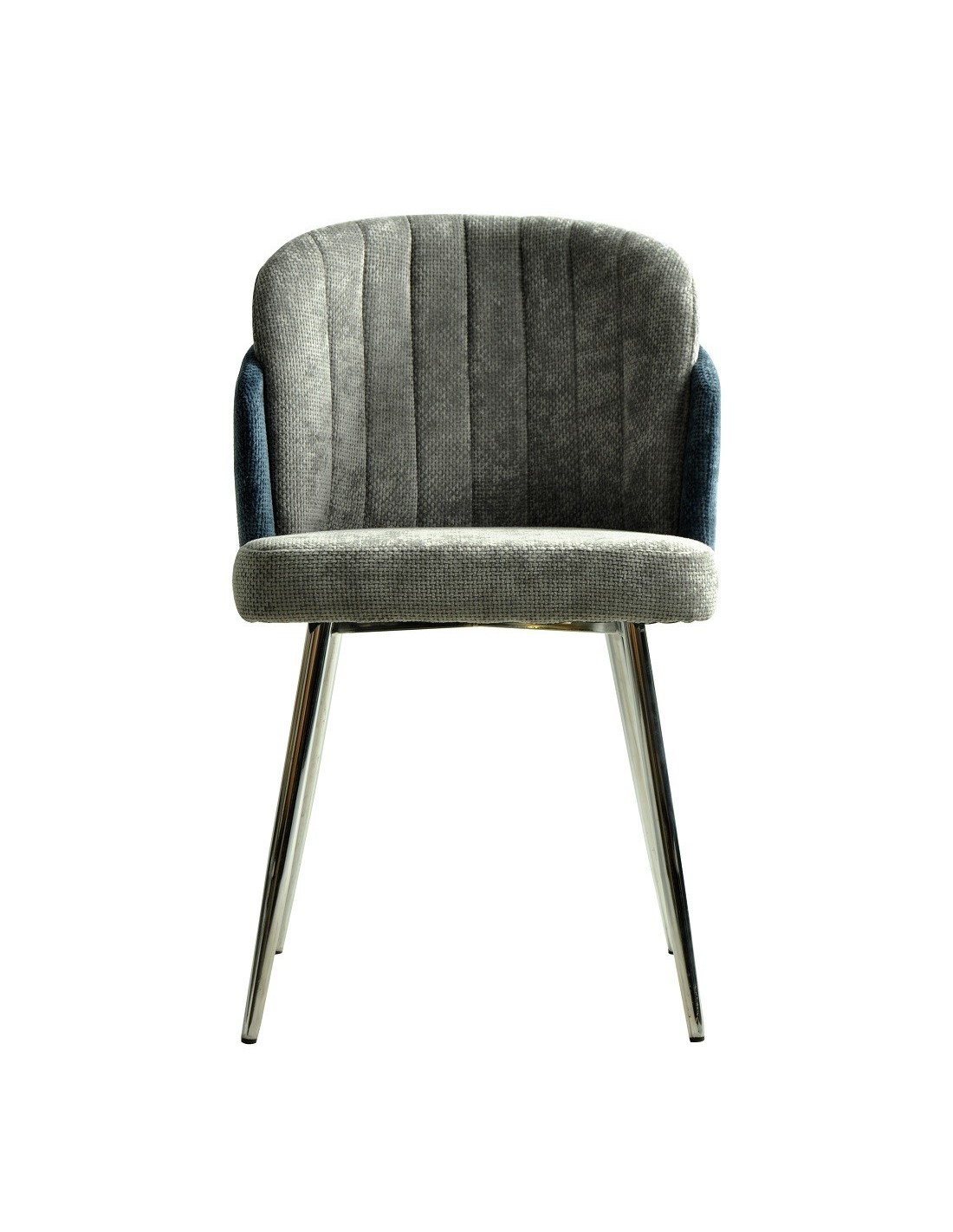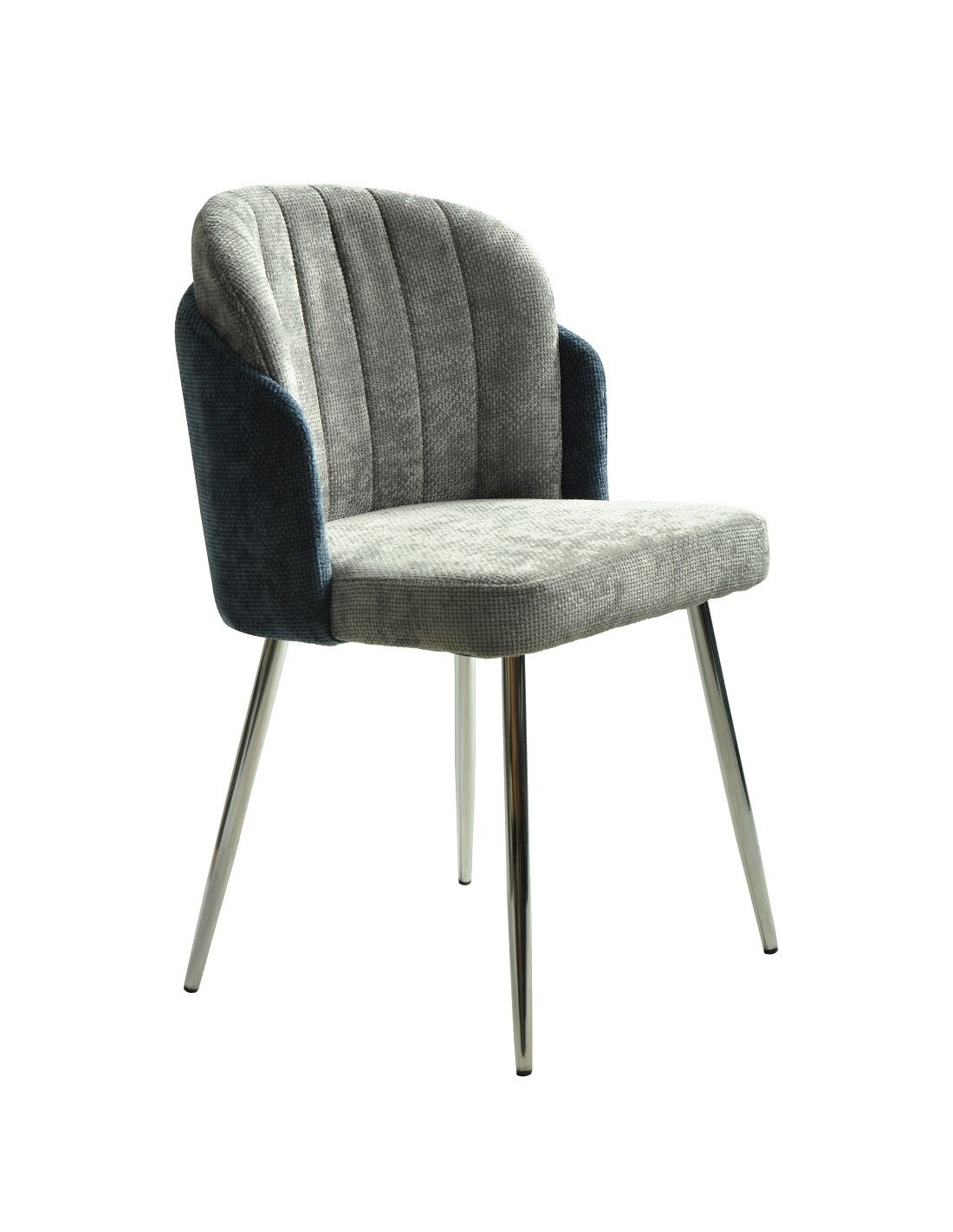 Silla de diseño, multiusos, madera de haya, barnizada natural, asiento y respaldo tapizado similpiel gris